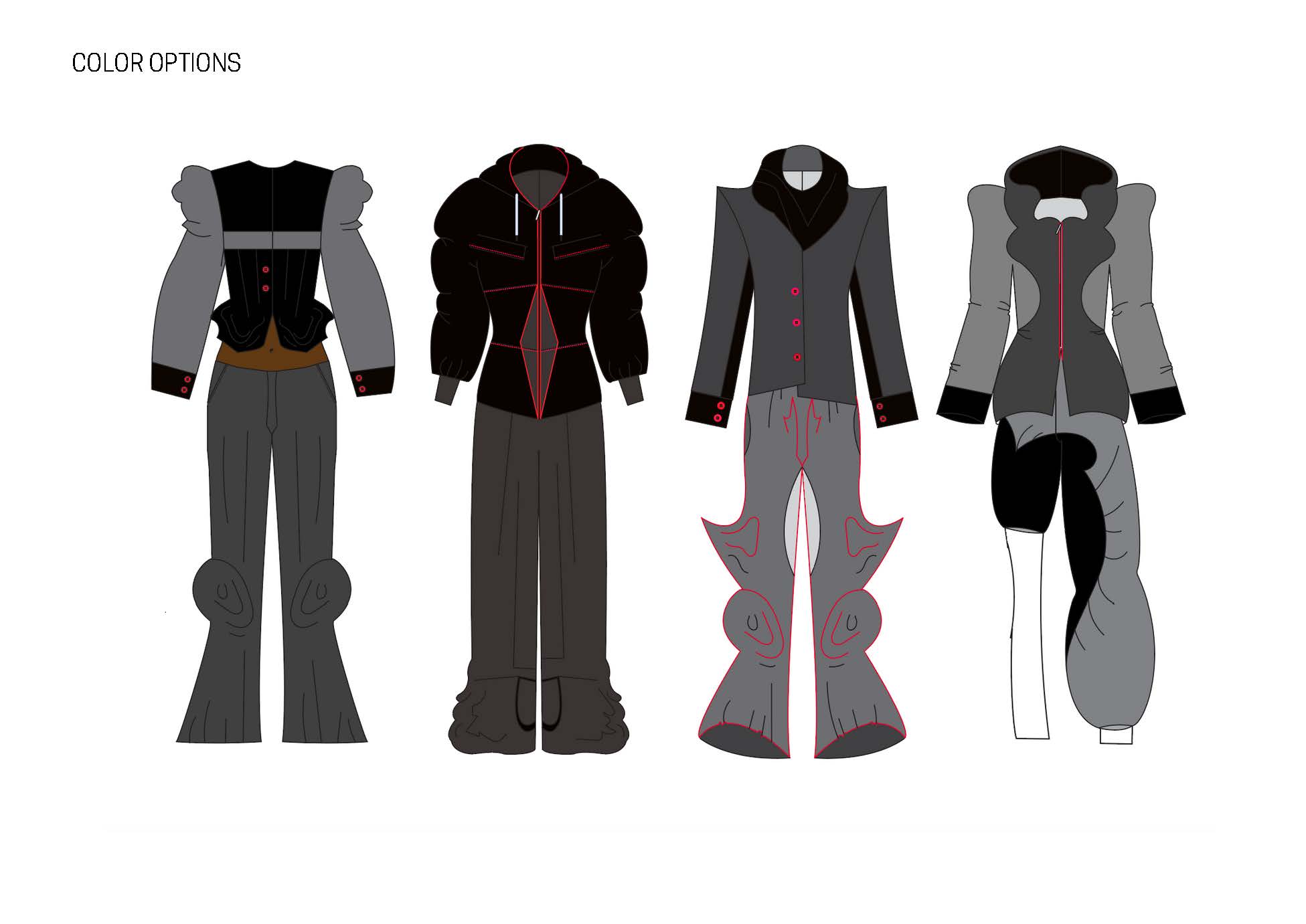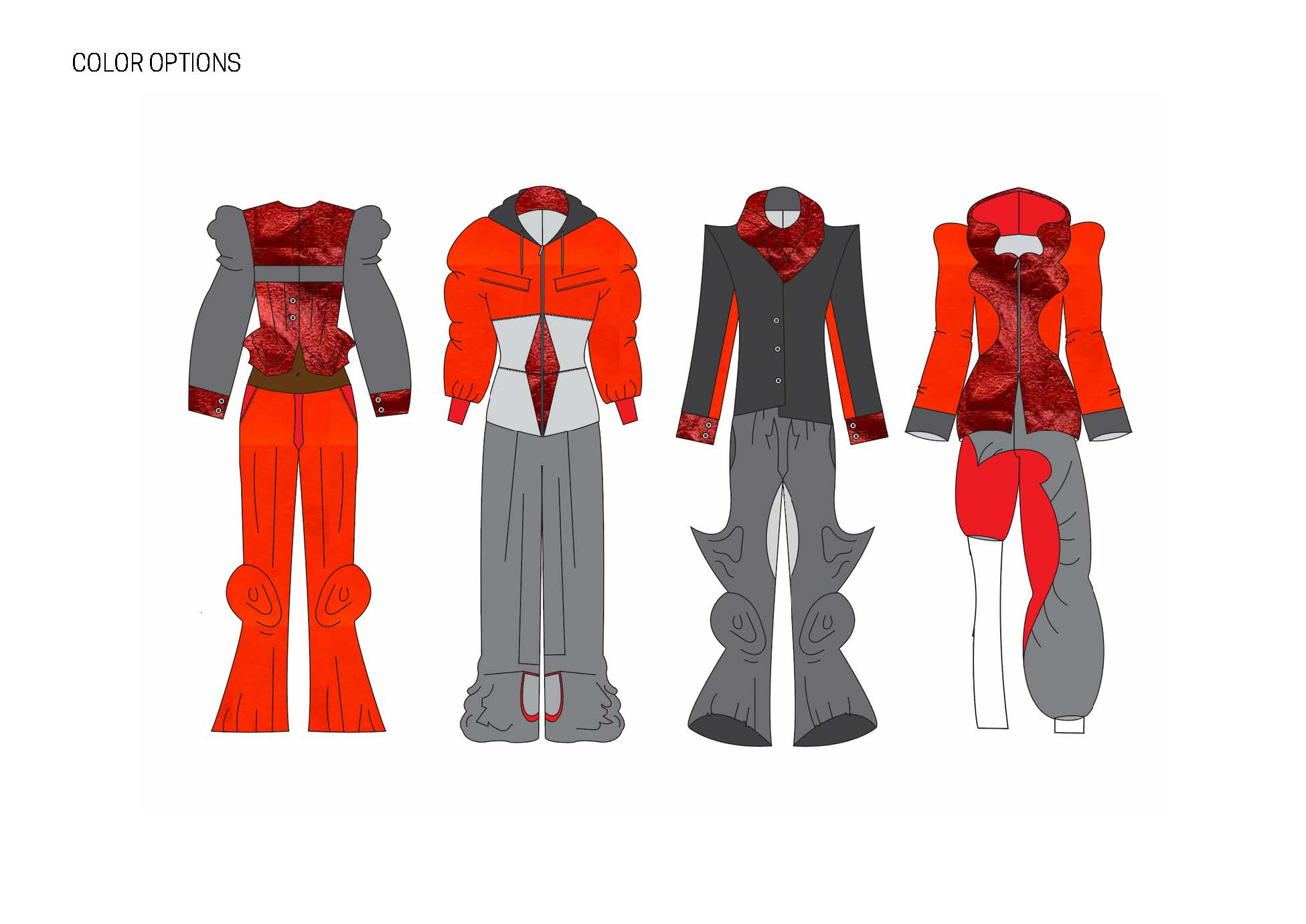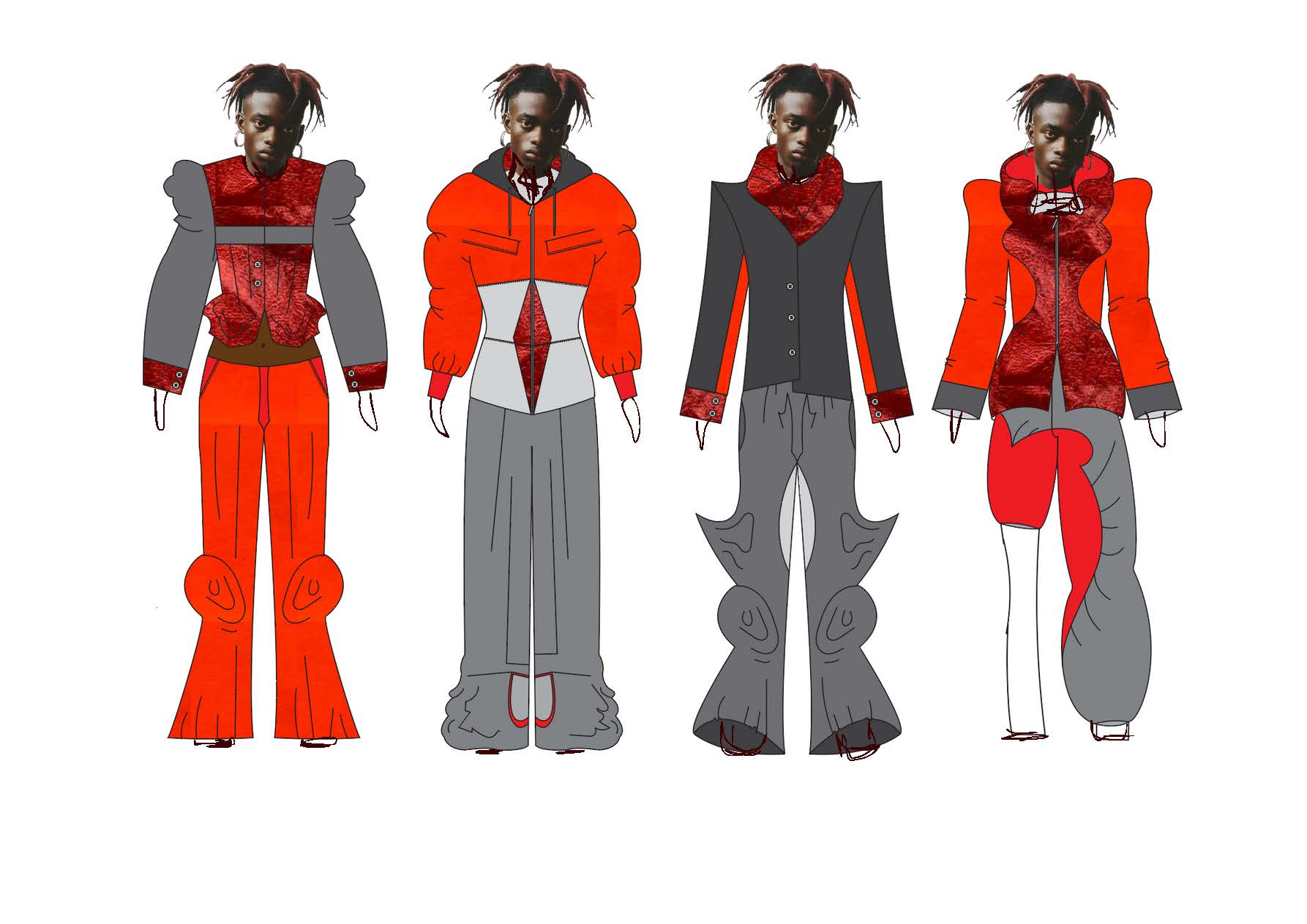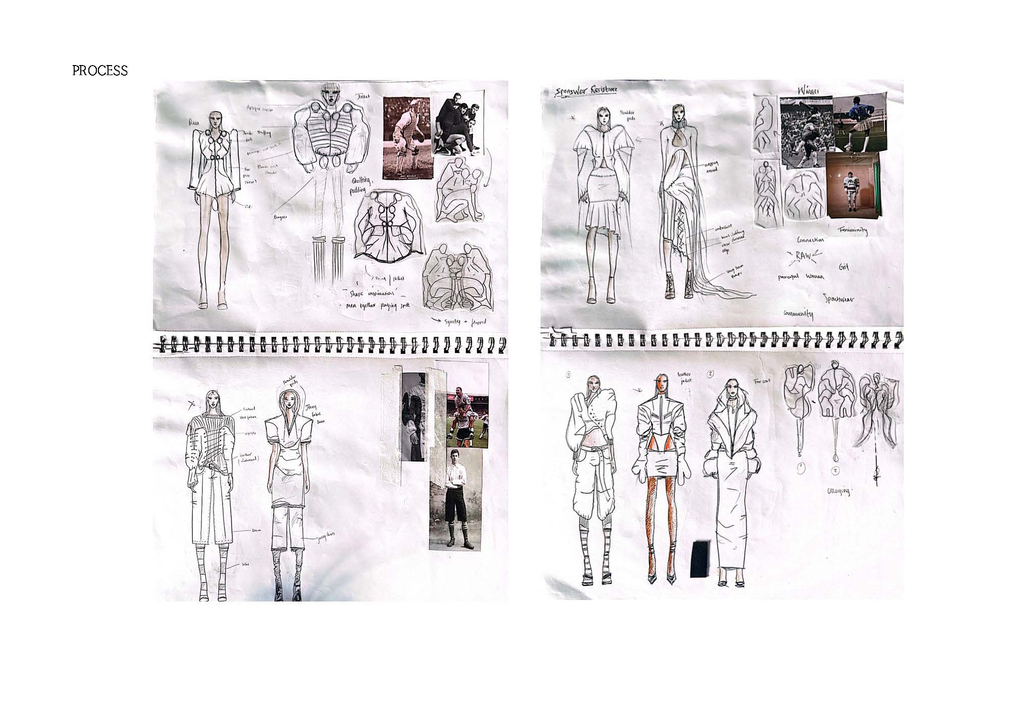 This collection blends the ideas of fighting with my own femininity and adhering to masculine norms. It shows how clothing can be both a shield and a statement, blending the ruggedness of traditional Irish workwear and sportswear with elements of restriction, concealment and defiance. I used mostly red cotton ticking stripe – a fabric traditionally associated with workwear, durability, and domestic spaces. Its rigid structure and repetitive lines mirror the constraints of rural masculinity and nods to vintage sportswear. The silhouettes blend the ideas of utilitarian workwear with elements of restriction, defiance and self expression.