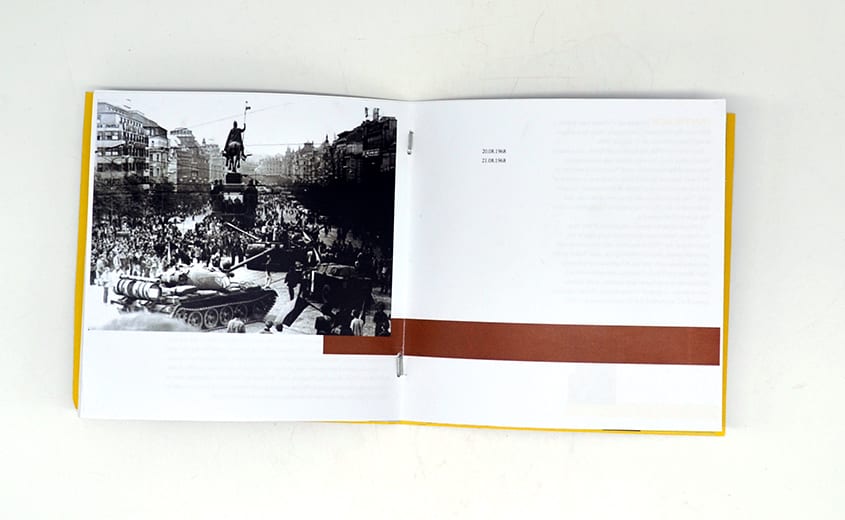 Using the combination of type; layout; color and images to create a book that celebrates the history of Czechoslovakia and their fight to freedom. ‘HOPE’ has two voices, it has the voice of the Czechoslovakian people which is represented by yellow colors; free slowing type and smaller images. This contrasts with the voice of Soviet Union who is imposing the communism on these people, they are represent by dark red colors, tight type and big loud imagery. These conflicting colors; typefaces and imagery continue throughout until hope wins out.