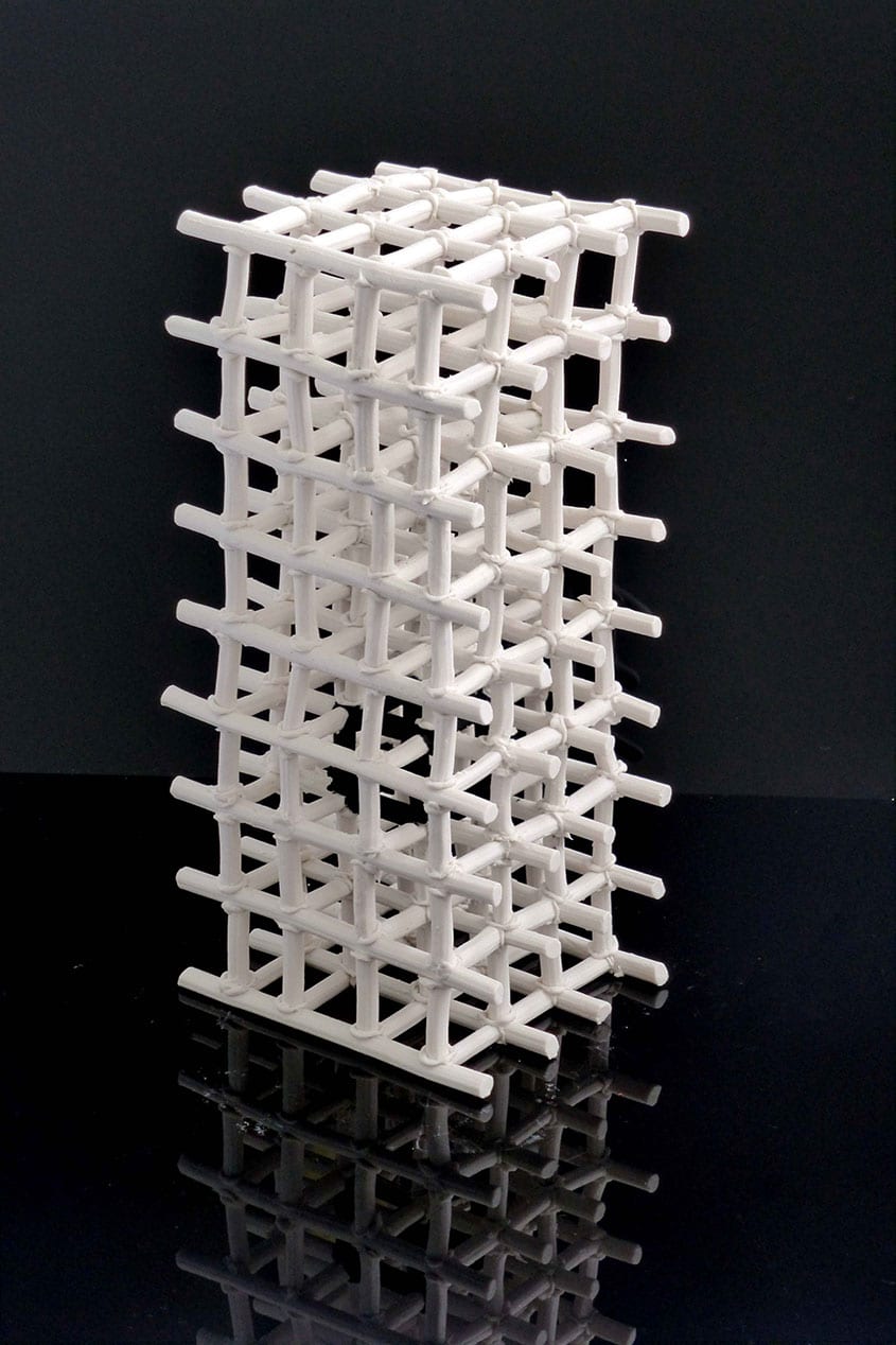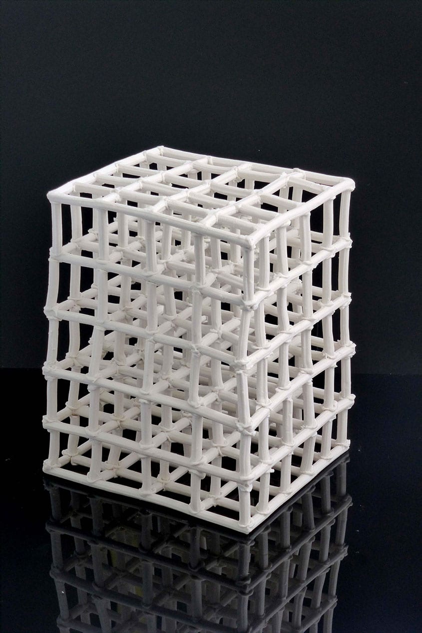 This is explored through a series of three- dimensional grid-like porcelain forms, a silent space within a delicately constructed boundary.