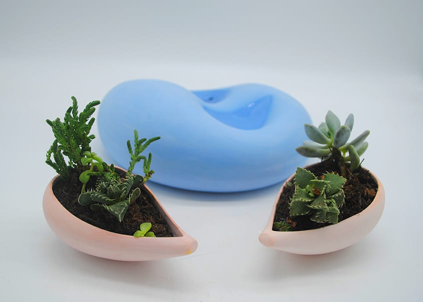 My ceramic work explores this tension to create contemporary sculptural ceramic planters. I am paying homage to the succulents that surround me by giving them a new home, inspired by them, in which to flourish.