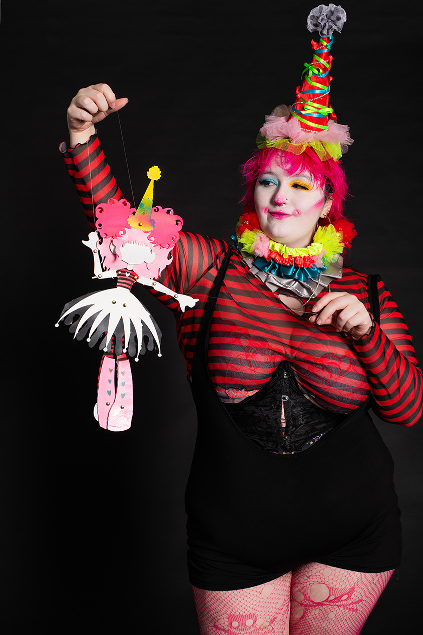 Nicole Barrington is a Clare/Limerick based fine artist whose work centres around drag culture, fashion and makeup excellence. Her work is largely inspired by Drag Shows in limerick as well as music, media, fashion and movies. This body of work consists of her love for Dolls and Drag, and now finding ways to have the intersect. Nicole has always used photography to further her research and work, through college has developed a love for photography that is felt needed for her work to represent it. Drag Masks, Maskquerade-ary, highlights the creativity and artistry of her work as she explores the world of drag through unique and customized masks While also exploring the world of drag and gay culture, the sad reality of queer people feeling a need to hide within environments that should be safe for them came up quite a bit. Her masks are inspired by drag makeup looks and makeup excellence. The notion of placing a mask of “normality” or “heterosexuality” to feel safe or fit in with people that surround them.