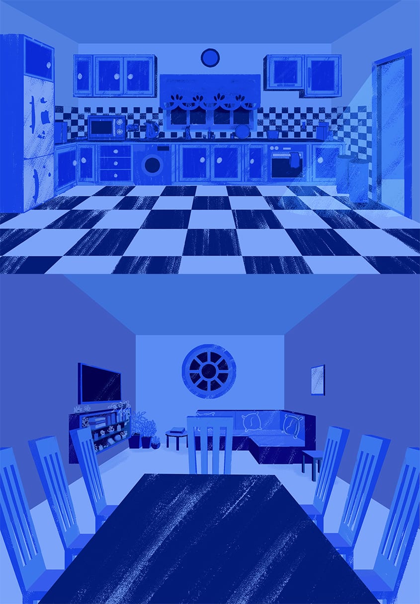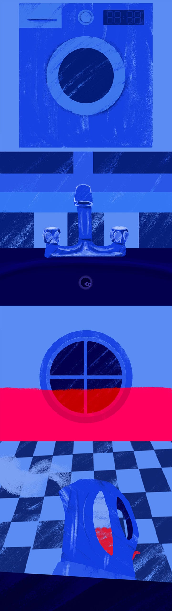 Through her eyes, mundane, everyday household utensils become menacing and portentous. The mounting chaos brewing in her psyche is portrayed partly through the gradual, unbearable cacophony of these utensils, from the ticking of the clock to the grating churn of the washing machine.