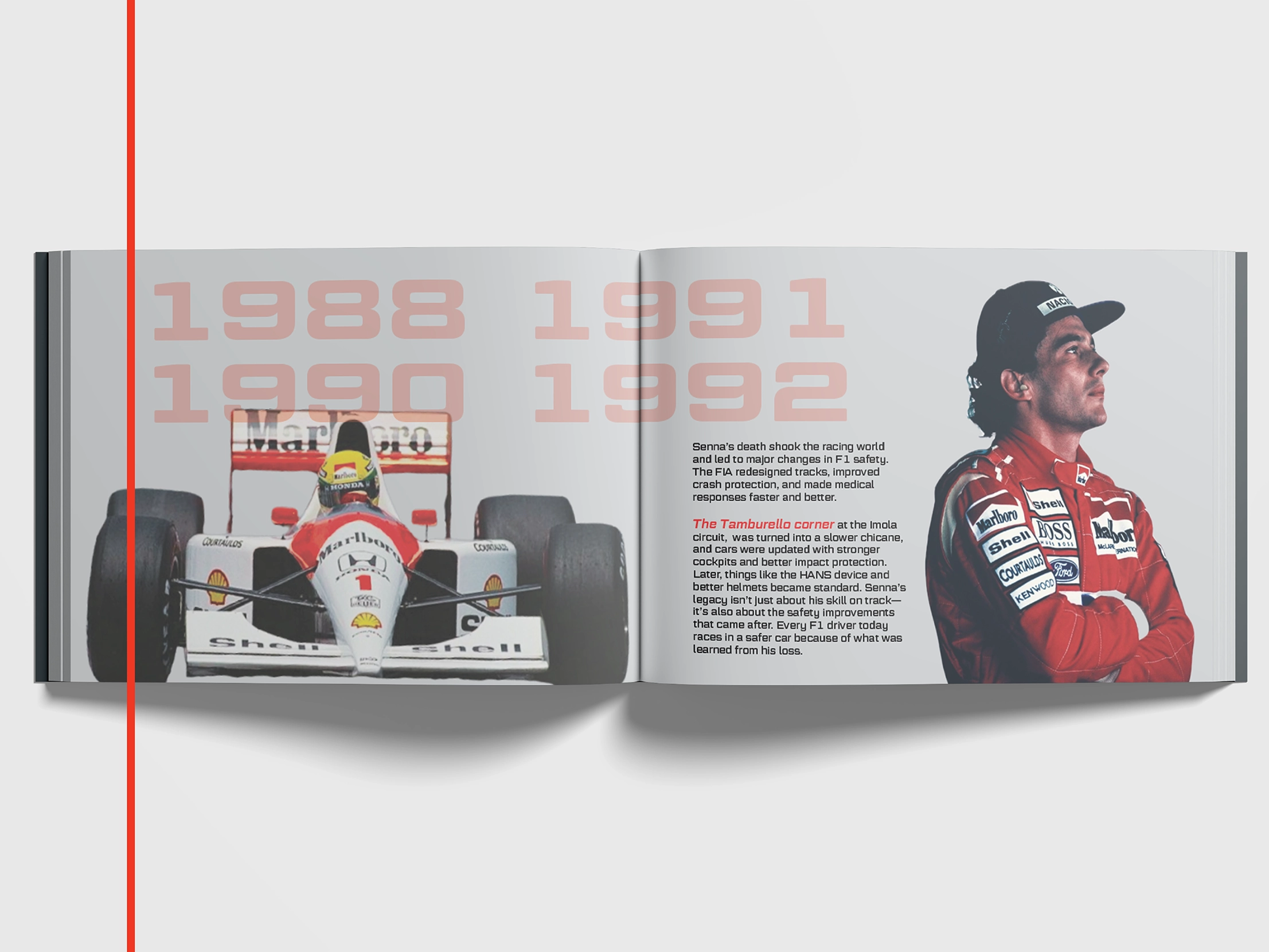 This project captures the rich history of Formula 1—from its first official season in 1950 to the modern era—through bold and visually engaging editorial design. It celebrates the sport’s evolution by showcasing pivotal moments, legendary drivers, and the transformation of F1 cars and racing culture over the decades.