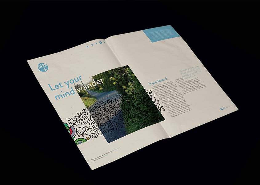 Take 5 is aimed at this young demographic to help them de-stress and take time out in the day to practice mindfulness. At the same time it doesn’t associate mindfulness with what people stereotypically think of meditation. Take 5 asks us to take 5 minutes out in the day to concentrate on ourselves by following 5 simple steps.