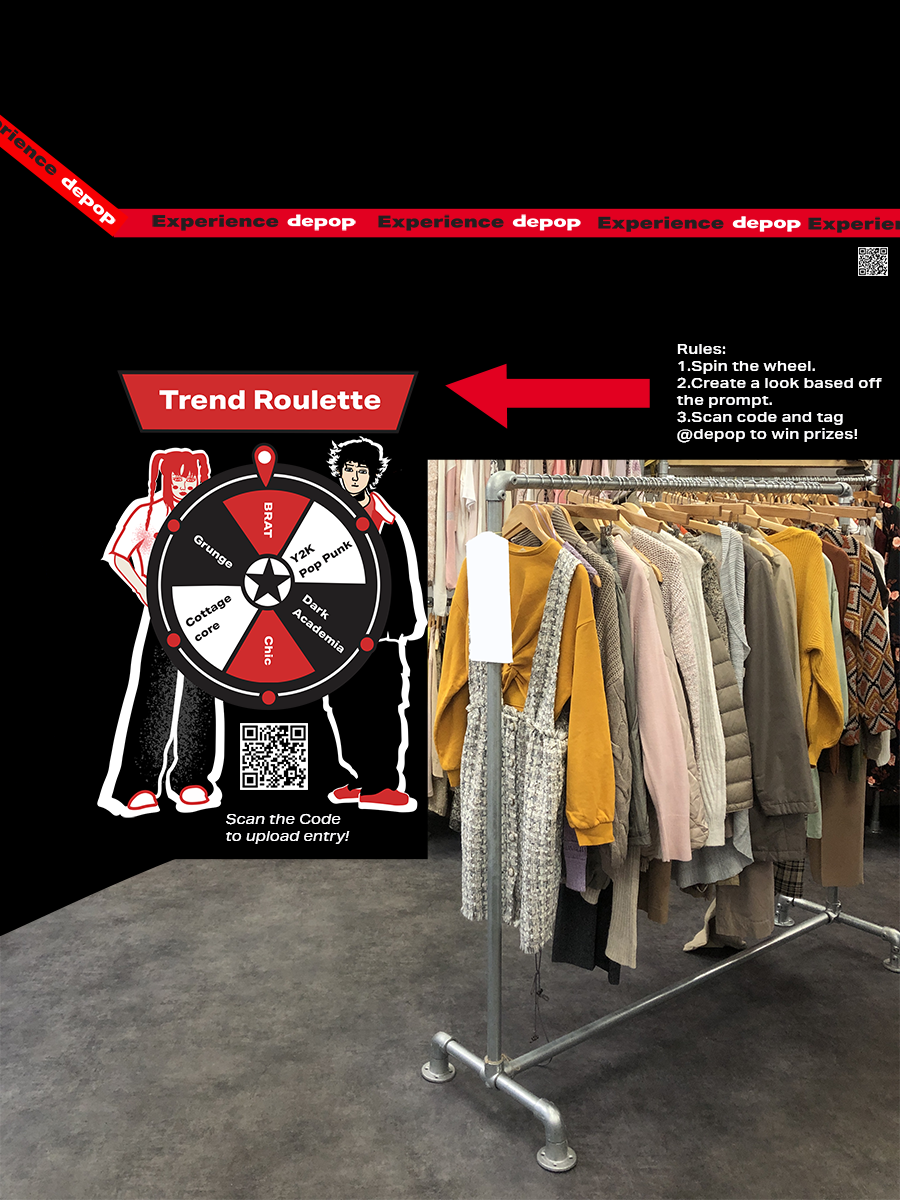 At the heart of the campaign is a traveling marquee pop-up shop (for smaller towns), a physical shop (for bigger cities) complete with a photo-booth and the Trend Roulette Challenge (#ExperienceDepop). Shoppers can participate in the Trend Roulette Challenge by engaging with fun styling prompts, sharing their looks on social media, and competing for rewards. Real-time challenges and prizes, including influencer meet-and-greets and early access to exclusive drops, further amplify excitement.