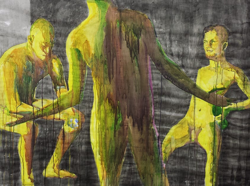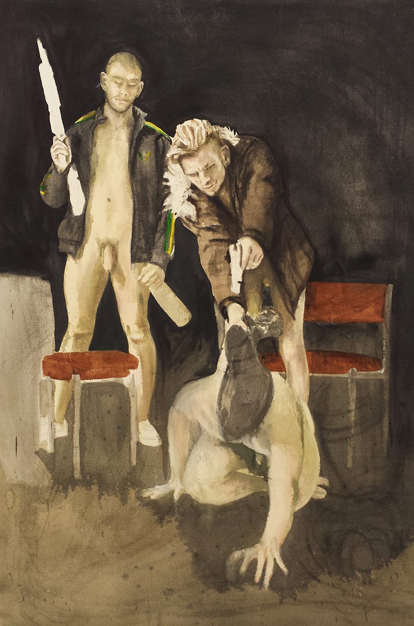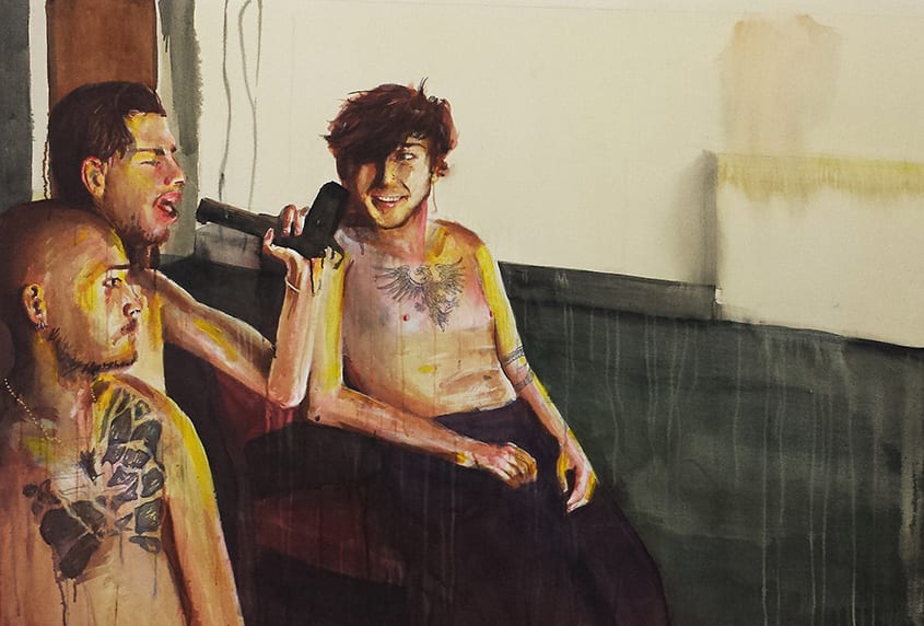 Through working in the consistent theme of male identity Holmes’ work becomes an investigation into the role of the contemporary artist. His work is a continually evolving corporeal corpus in which each new work adds to the knowledge and informs the rest. Each painting becomes a vestige of Holmes’ thoughts, instincts and ideas in the brief moment that the paintings were made. His work considers notions of a ‘coming of age’ and reflects his own coming of age both as a person and as an artist.