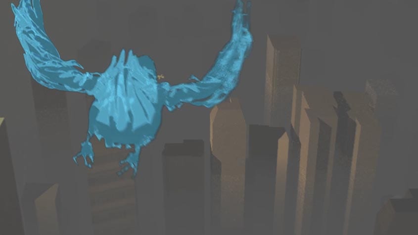 I is an animation short that explores a dystopian societal narrative as influenced by the writings of Ayn Rand. The Randain philosophy of objectivism, advocating an ideology of selfishness where the pursuit of one’s own happiness and success, no matter the cost, is the primary cultural concern. The notion of individuality is portrayed as struggling against totalitarianism and suggests that within every totalitarian propagandist state there is chance for a small glimmer of hope. This 3D generated world acts as analogy for cultural collectivism, societal controls, and the delicate hope that people can be free like a bird in the wind again.