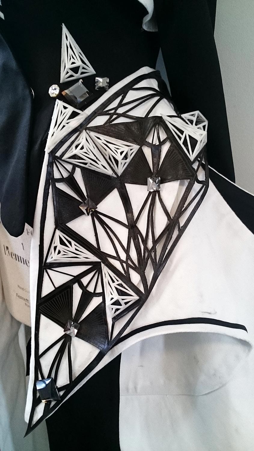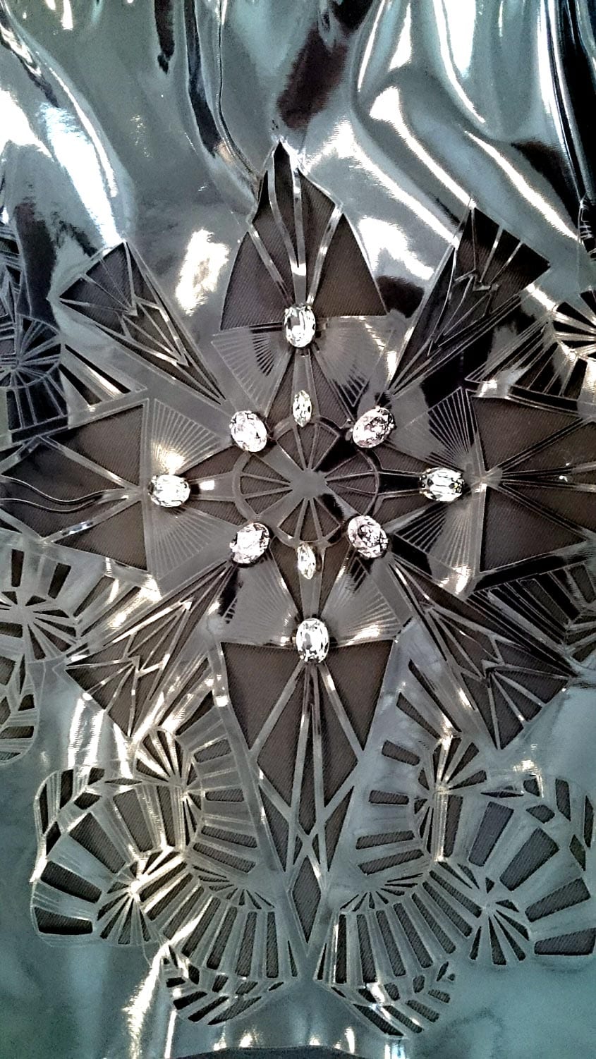 It is a celebration of the performance of dreams and explores theatrical opulence with glass stones, Swarovski elements and real leather. This collection demonstrates the use of technologies such as custom-made 3D printed embellishments and intricate laser-cut designs.