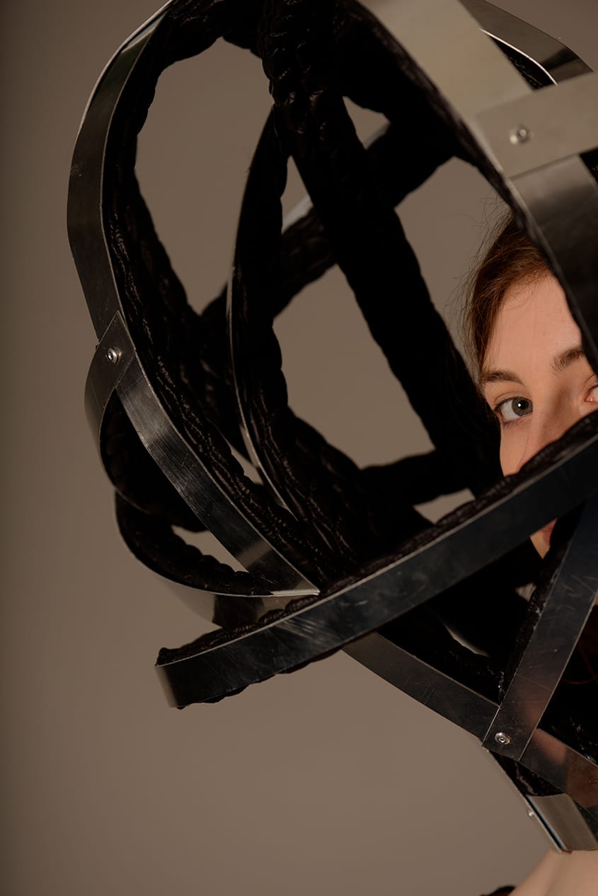 Through my experience with anxiety I am exploring how emotional qualities can be translated into wearable artworks. These items are meant to be worn on the body as an interpretive tool. While the wearer doesn’t get a totally truthful experience, they can gain an understanding on a physical level of what this particular emotive state may feel like for somebody who suffers from it. These are restrictive garments which hinder the body from its natural movement, thus mirroring how anxiety can restrain us from doing things we may fear.
