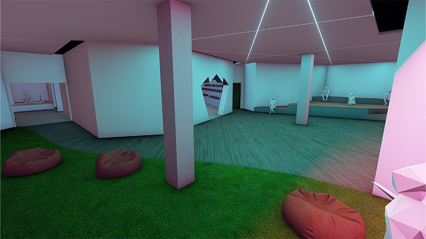 Drawing from a personal hobby, a space was designed, specifically for the gaming community, an area of art that is often forgotten, and in general, does not have a collective physical space to retreat to as there isn’t many places as such available within Ireland.
