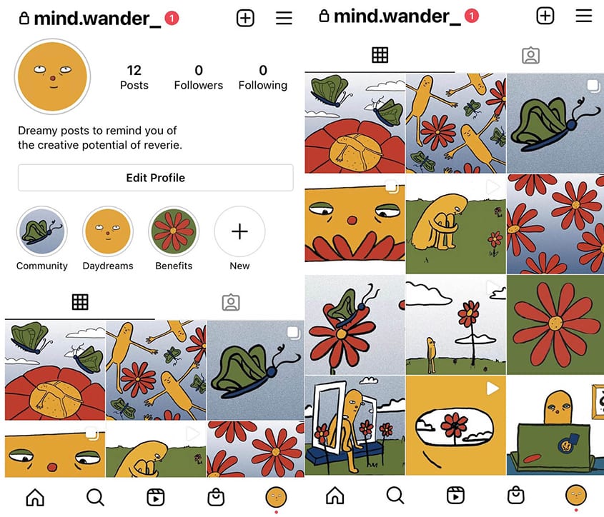 There is a constant pressure to be productive. We are supposed to be working, studying or ticking off things on your to-do list. The pressure of being constantly productive and doing focused work can lead us to burn out and be damaging to our mental health. Daydreaming seems like a waste of our valuable time, but taking that break helps with our memory, creativity, problem solving and helps our overall wellbeing. This project encourages us to see daydreaming as productive activity and provides a platform for creatives to unfocus. Mind Wander brings people dreamy narratives and an online community to stimulate their own creativity that they can share with other wanderers.
