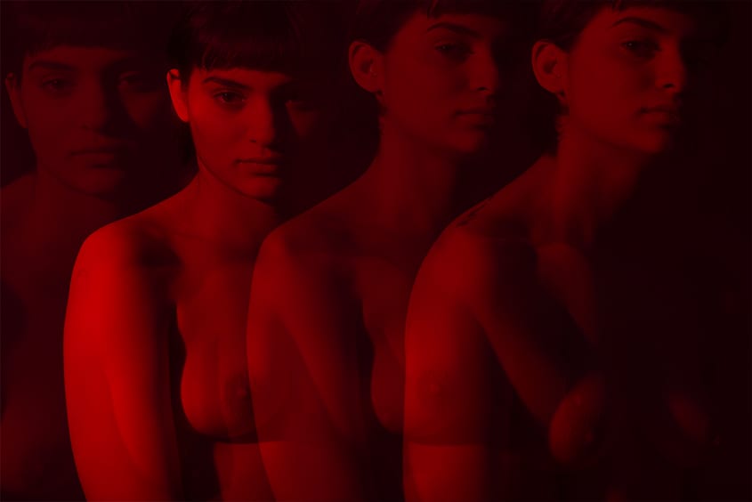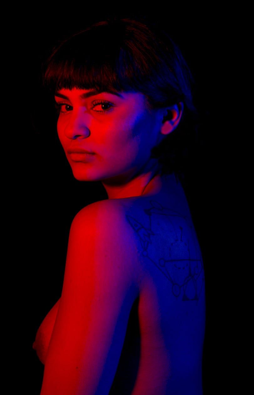 Using photography, Keating explores the female form with the intention of antagonizing the historic male gaze. Making reference to the traditional era of the classic Rembrandt style as a point of departure, Keating uses a contemporary approach to capture an artificial light and color. The work sets a tone of intimacy with the viewer by breaking down the barriers of nudity within Keating’s work.