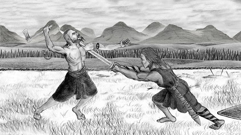 When the hero of Ulster was a boy, it was prophesised that he would achieve more glory than any Irish warrior before him, but live a short life. As Cú Chulainn rode out to battle with the army of Queen Medb he was weakened by a an encounter with the Pagan Goddess of death, The Morrigan. The Morrigan took the form of three hags who shamed him into consuming the meat of a hound (An act forbidden to him due to his namesake, the Hound of Culann). Nevertheless, the hero singlehandedly engaged the army on the battlefield.