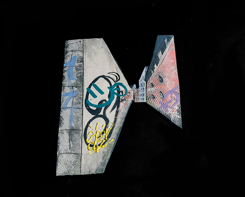 An exploration of graffiti in the urban environment provided the starting point for this series of unconventional tiles. Using distorted perspective, my work invites the viewer into the urban landscape.