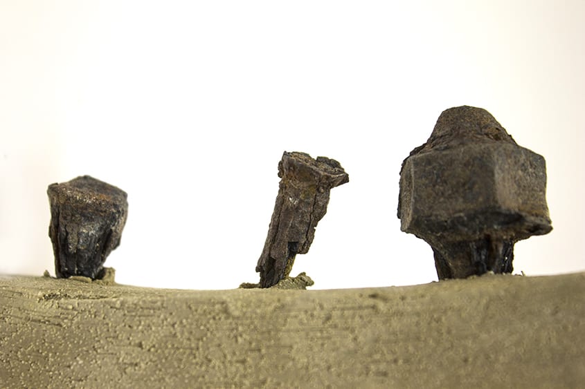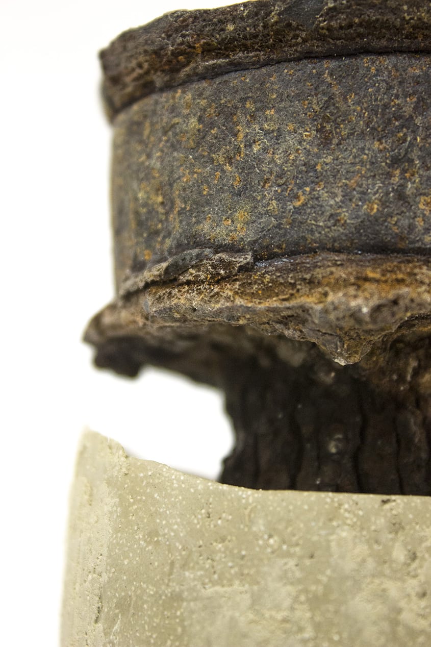 Found objects, washed up by the sea ignite my imagination, particularly those found along the coastline of Little Island in Cork, an area I frequently visit. The sea acts like a partner in my work, washing up artefacts from the old harbour and the industrial mills area. Eroded and changed from their time in the sea, these objects at first seem peculiar, however on closer inspection we begin to recognise them and their former uses, attaching them to place and cultural history.