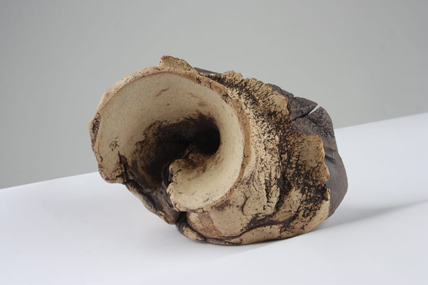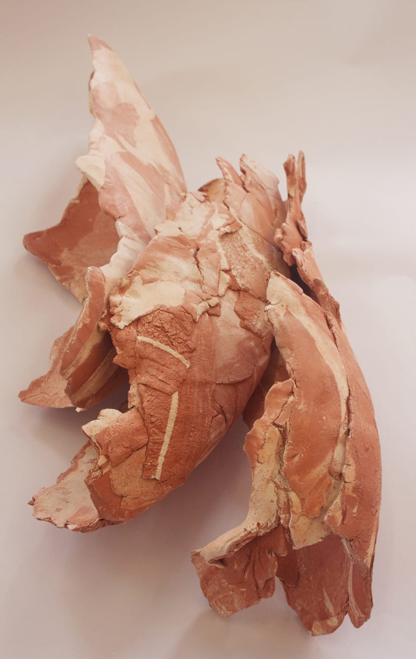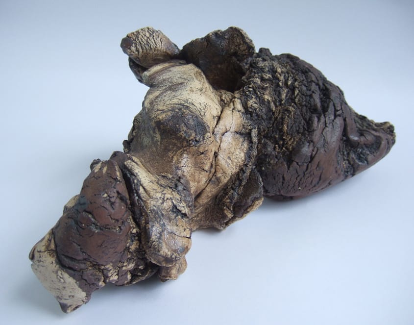 I am interested in the interplay between the permanent and the ephemeral: the way the rocks essentially remain the same but appear different every time the sea washes over them. New forms are created as they are covered with sand, seaweed and debris, only to be transformed yet again by the next tide. I have tried to capture these fleeting moments in my handling of the clay and in it’s spontaneous reaction to being stretched, squeezed, twisted and torn. It is the turbulent, expressive energy of this natural world that fascinates me and my work aims to reflect some of it’s mercurial essence.