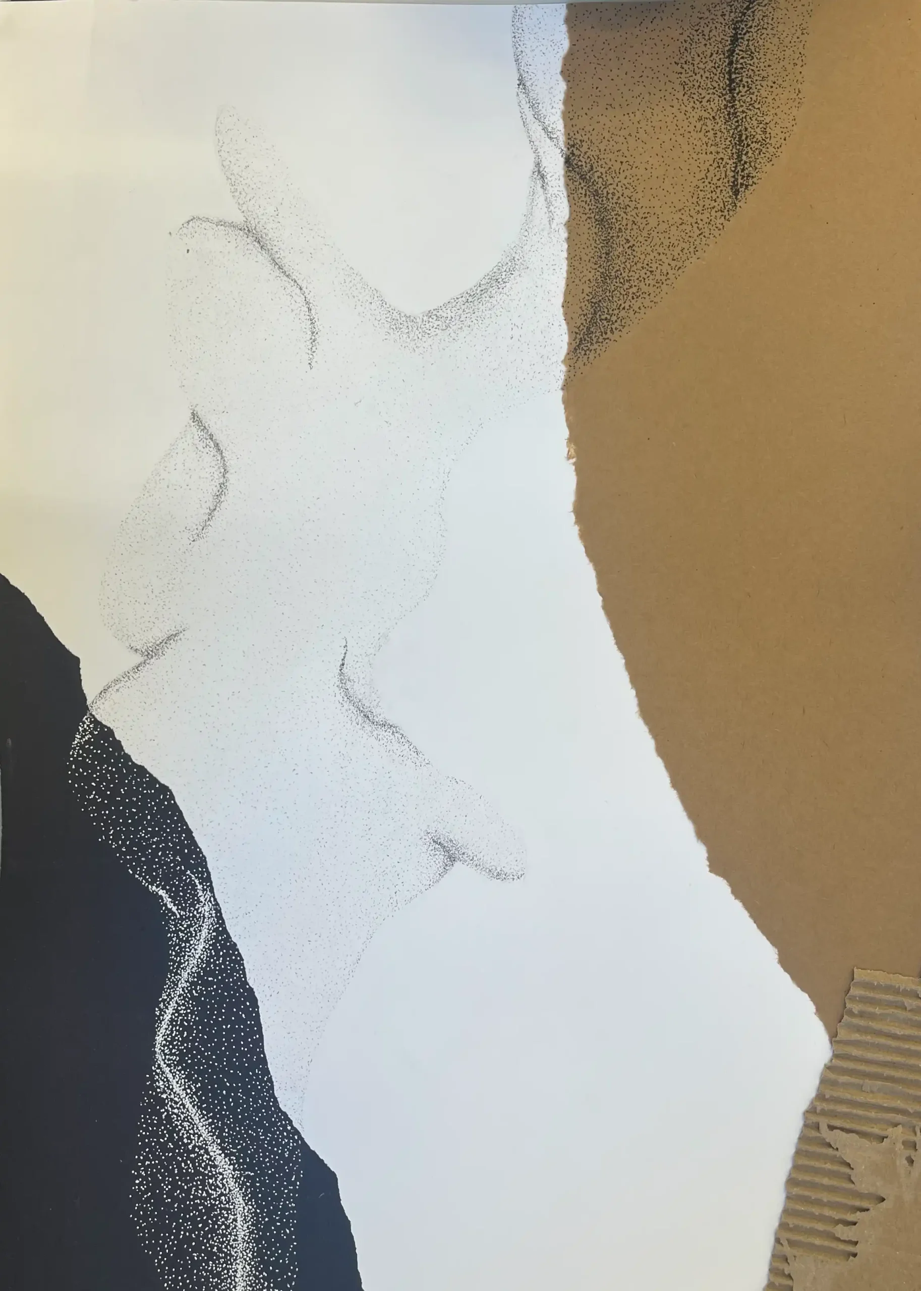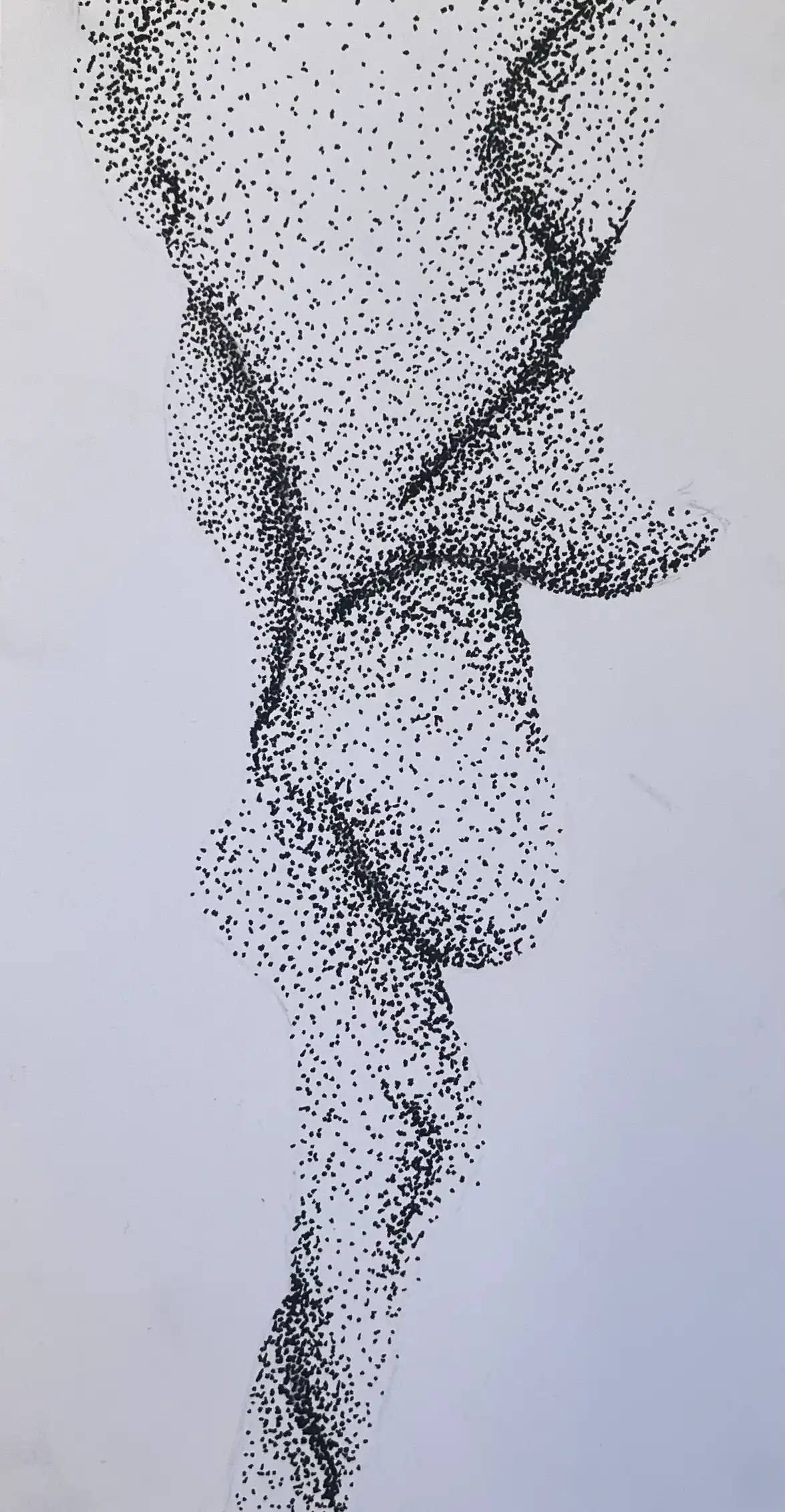 I have a deep emotional connection to “Blinding Noise”. The constant sounds and feelings of being overstimulated in everyday life can be overwhelming. Sensory overload can occur at any time, I portray this feeling within my works. I created a series of mixed media drawings using marks and repetitive dots to create a feeling of constant ongoing annoyance. The thousands of dots moving, twisting and turning feel uncontrollable and chaotic, similar to the overwhelming overload of emotions. Not knowing how it is going to turn or develop. My aim is to invoke this sense on imbalance and unease within others.