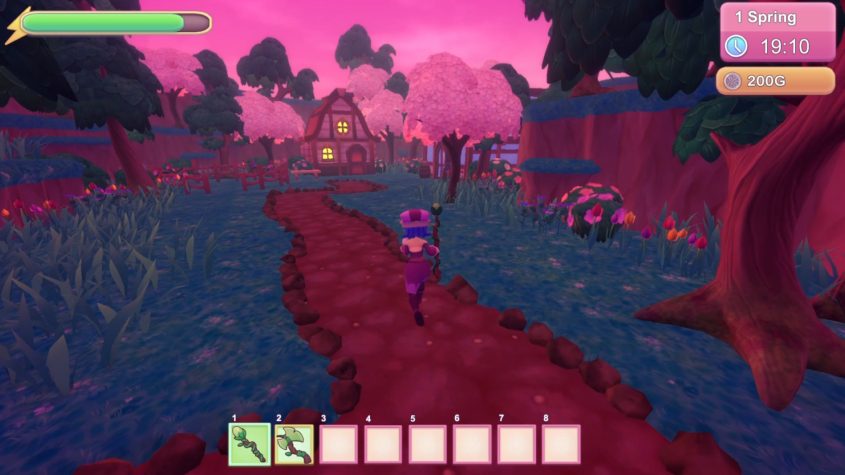 For this vertical slice, I focused on developing the colourful stylized visuals and setting up the basic game loop. The player can grow Plantlings from seeds by watering them each day, and harvest crops from full grown Plantlings which can be sold at the village shop as they are or cooked into dishes for higher profit. The player can also gather materials by chopping branches in order to create fertilizer, which increases the amount of crops a Plantling produces. The game features a day/night cycle, stamina system, inventory system, shop system, and dialogue system.