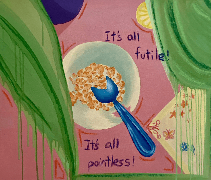 Through her art, she seeks to capture the surreal qualities of the home as a dream-like space using mediums such as painting, colour, and installation. By manipulating and transforming everyday domestic objects and materials, she aims to create unsettling environments that prompt the viewer to question their assumptions about the home and its role in shaping their sense of self.