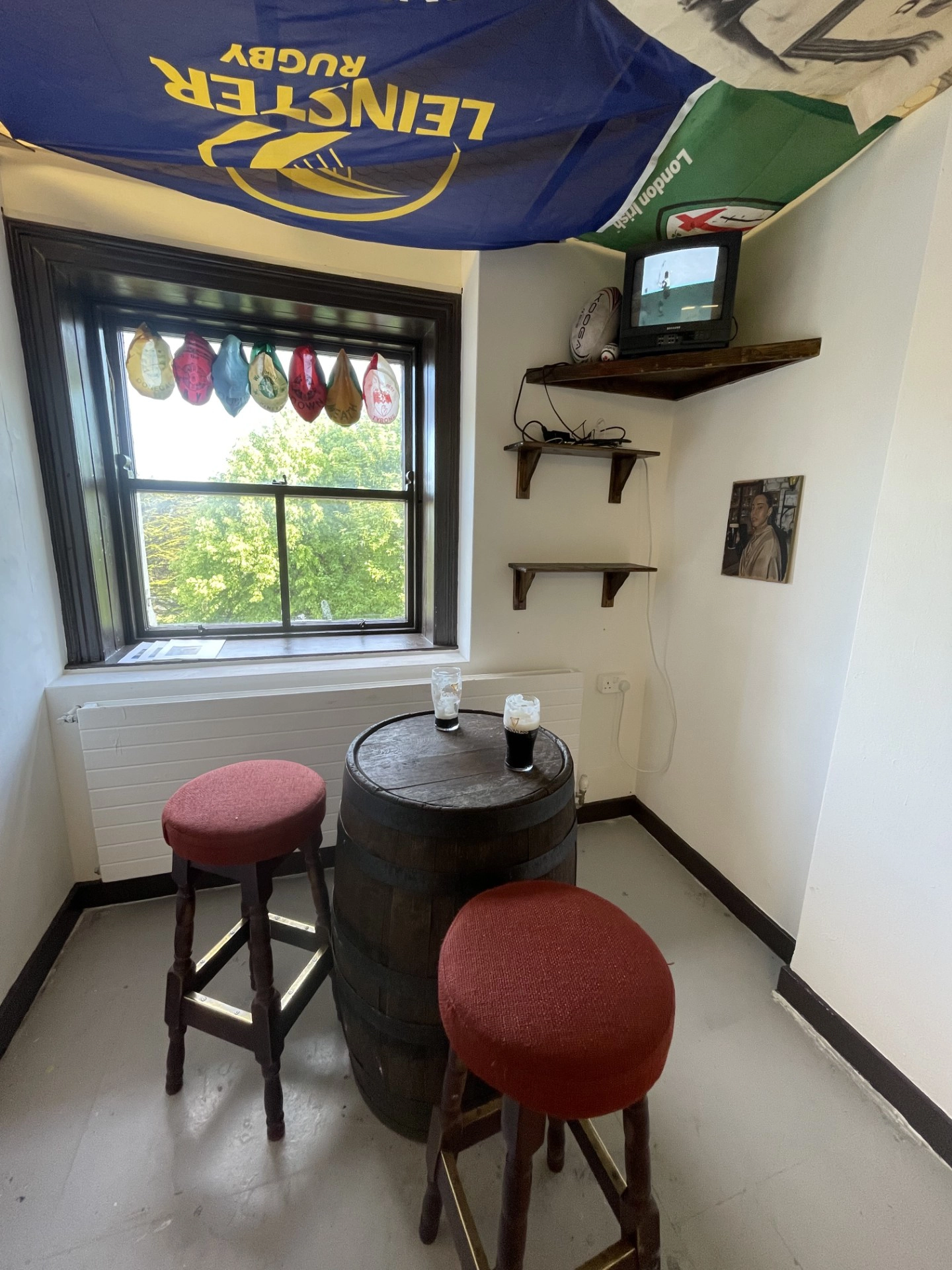 This installation marks a significant extension of my exploration into Irish pub culture and its intersection with gender, memory, and personal history. By reconstructing the familiar environment of my family’s pub, I’ve created a space that invites the viewer not only to observe the work but to inhabit it — to sit, listen, and feel part of a scene shaped by ritual, performance, and inherited traditions.