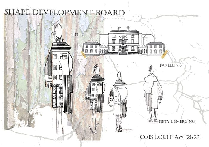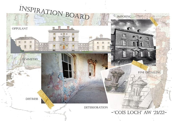 My graduate collection is inspired by Hazelwood House in County Sligo, which I live less than a mile from. It is a 300-year-old estate which has stood the test of time, taking on several roles throughout its lifetime. It was the first Palladian style of architecture built in Ireland, by Richard Cassells who also built Leinster House.