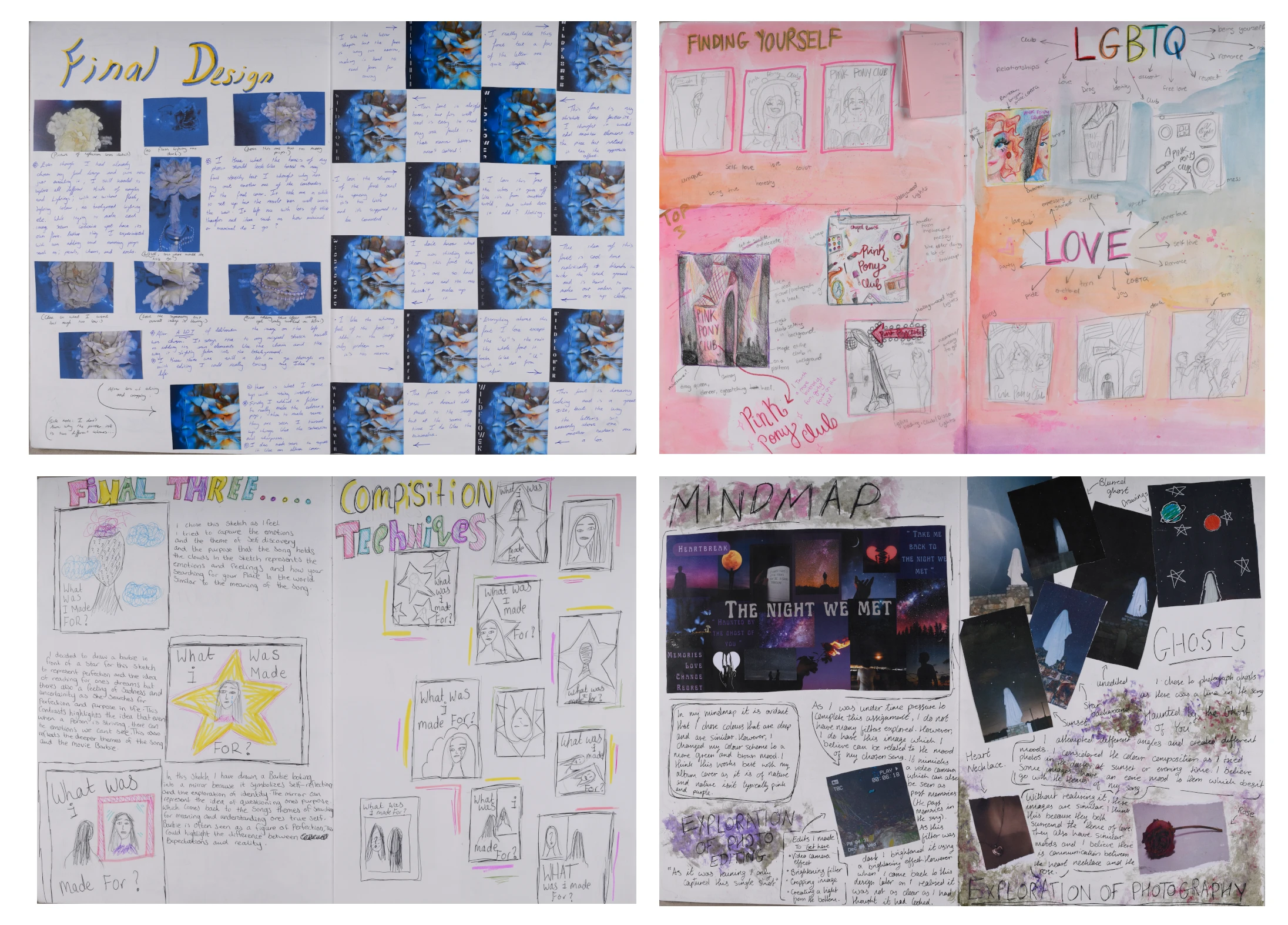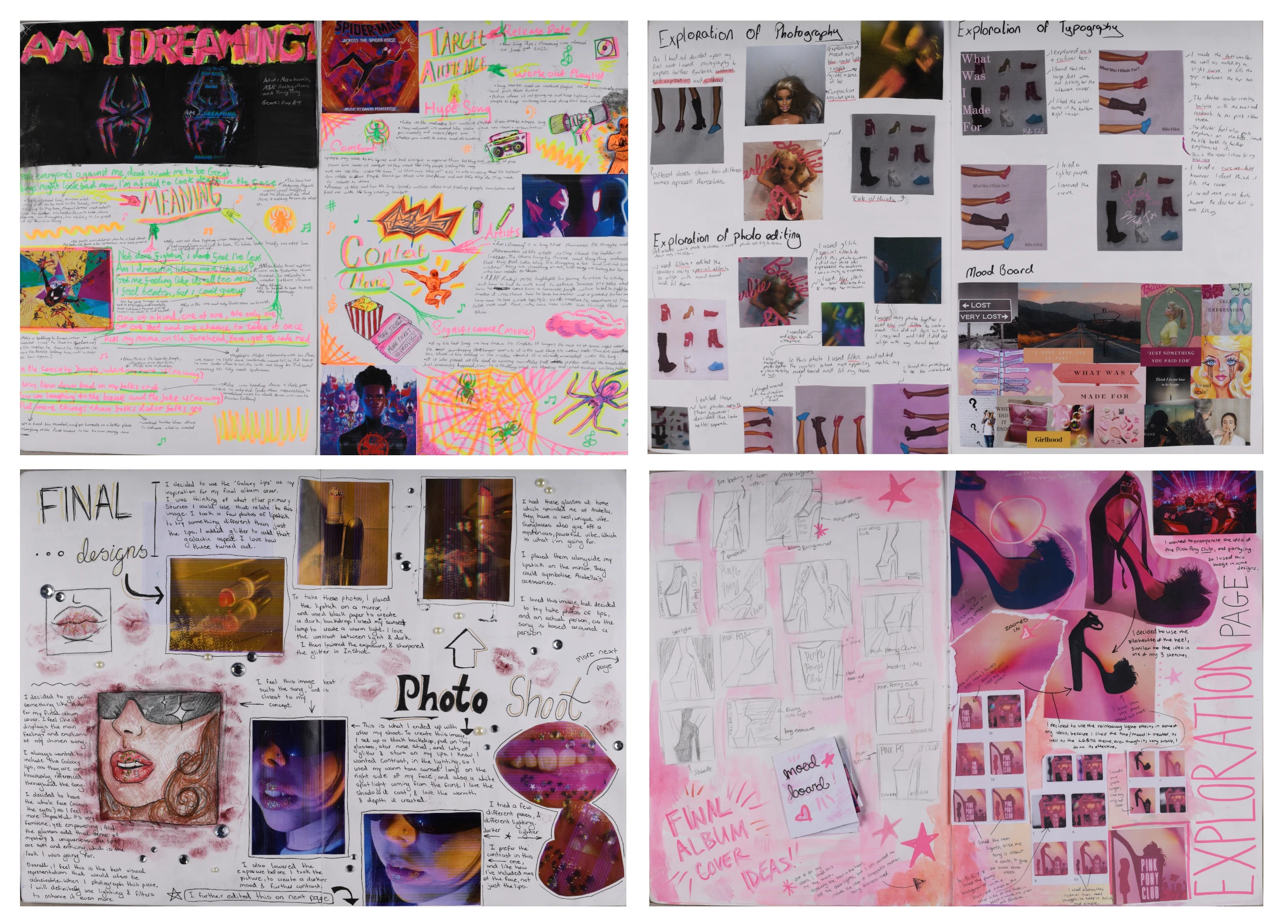 5th year students explored album cover design by choosing a song that resonated with them and redesigning its cover. Following the design thinking process, students began by analysing the song’s lyrics to identify the themes and mood, while also researching the target audience and context surround the song. Through drawing, thumbnail sketching and mood-boarding, students refined their concepts for photography. They explored story-telling through photography by experimenting with lighting, composition and household items to create special effects. Throughout the project, students analysed and developed the balance, unity, contrast, hierarchy and colour in their compositions and used tools like Canva and In Shot to enhance their photography. In realising their album covers, students engaged in peer review to finalise the typography, composition and photograph that best communicated the song’s mood and message. The result included polished album cover designs and short Spotify Reels that showcased the song’s themes through moving image and music.