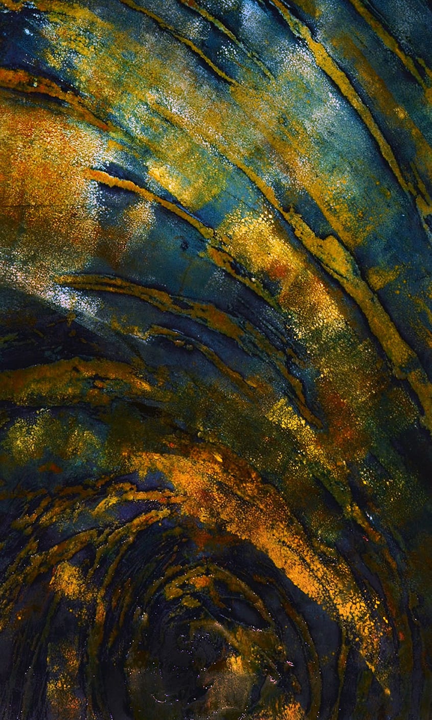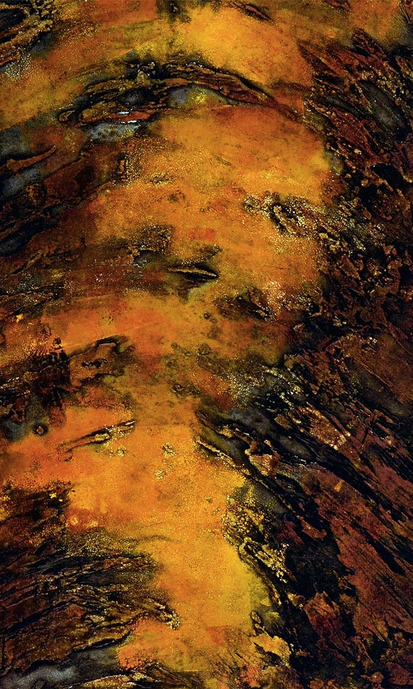 The cosmos exists in perpetual flux; developing residual scars on the earth’s surface. My work arises from an engagement with these scars, traces from centuries of metamorphic transformation.