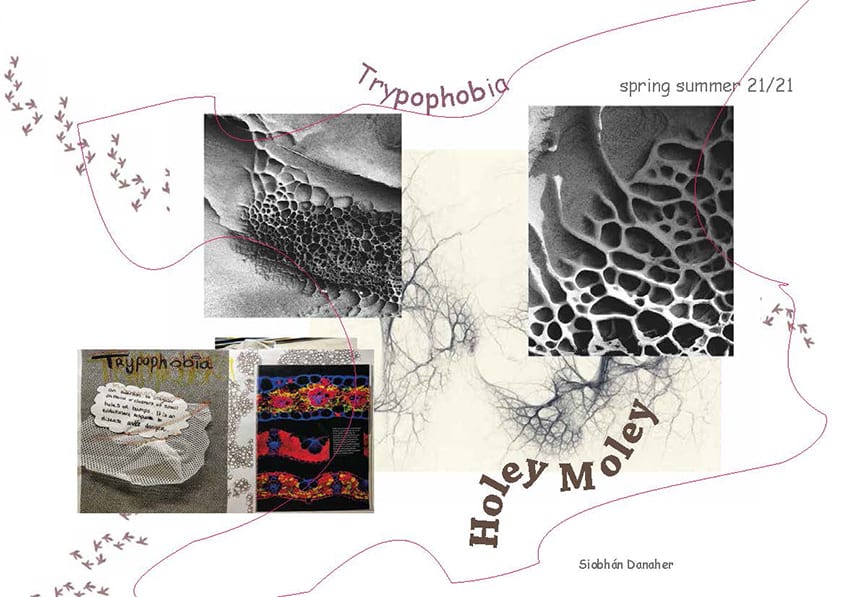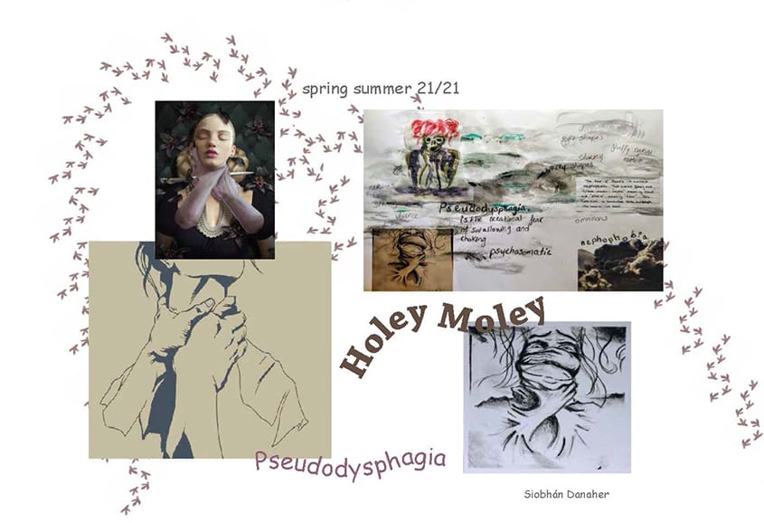 The inspiration for my graduate collection stems from the confusion and anxiety caused by irrational fears and phobias. The collection is encompassing three phobias together in total: alektorophobia, trypophobia, and pseudodysphagia.