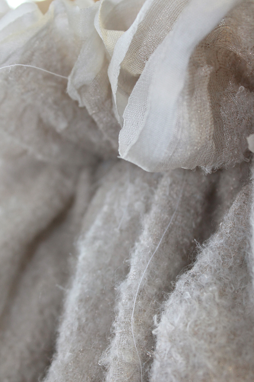 Siobhan’s collection focuses on various textures and techniques which she has developed through exploration and experimentation. This development, which is uniquely her own, she applied to contemporary silhouettes. Drawn to the sea, her inspiration comes from the movement and transparency of Ireland’s rugged and beautiful coastline. Siobhan has created pieces which are whimsical and heavenly when worn by the female body.