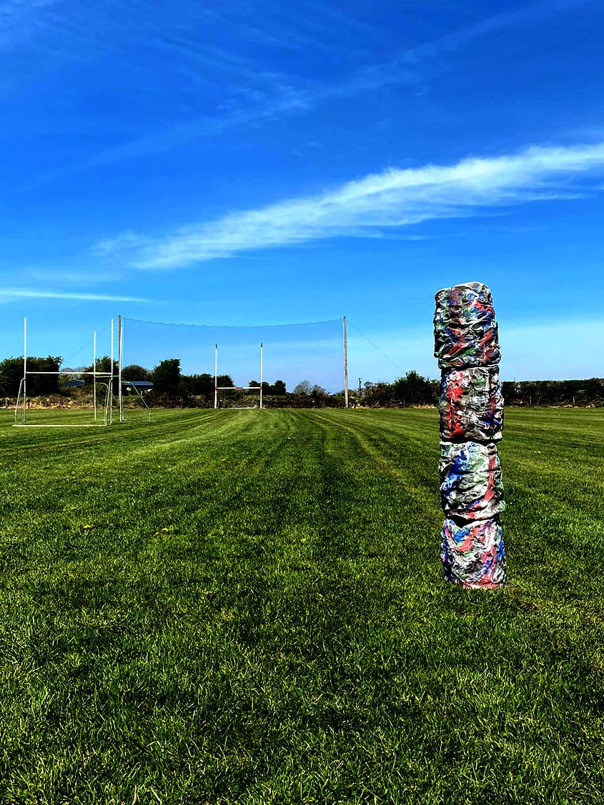 Through the material of clay and using my body as a physical implement, the rawness of the making experience echoes play – the abandon, the suspension of reservation, the sensations of sliding, buffeting, colliding, those marks made- left behind on each other and the pitch, documenting the brutality, the force, the energy. Form, material and surface embody physical experience, with added colour suggesting the tribal nature of the encounter.