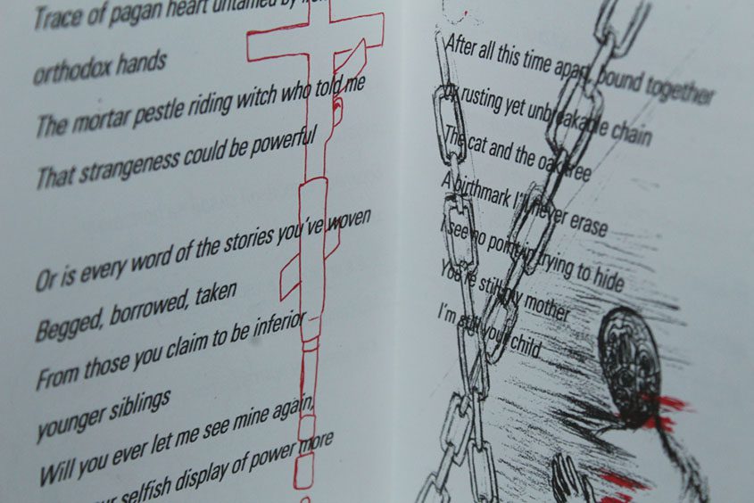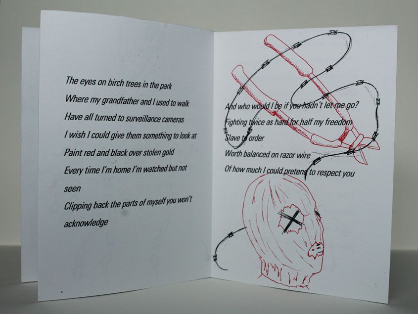My degree show piece is in two parts; a large scale collage and an interactive display of 5 zines. In the collage, I aim to encompass the feeling of tainted nostalgia from watching somewhere that once felt like home crumble from the inside, using a critical eye to see its negative aspects rather than clinging to an idealised past. The piece combines characters from fairytales which I once used to reconnect with my roots, with images that reflect the current culture of war and dehumanisation.