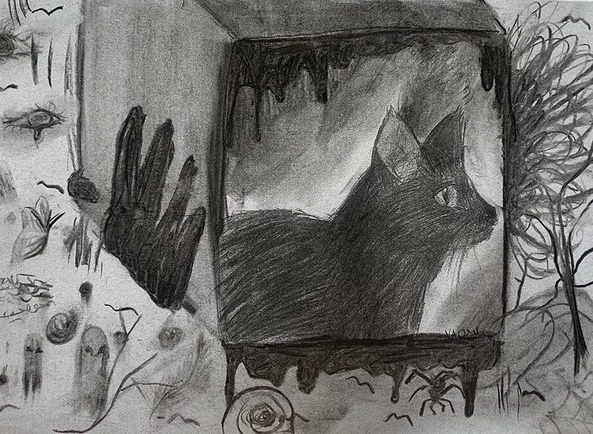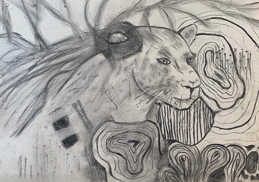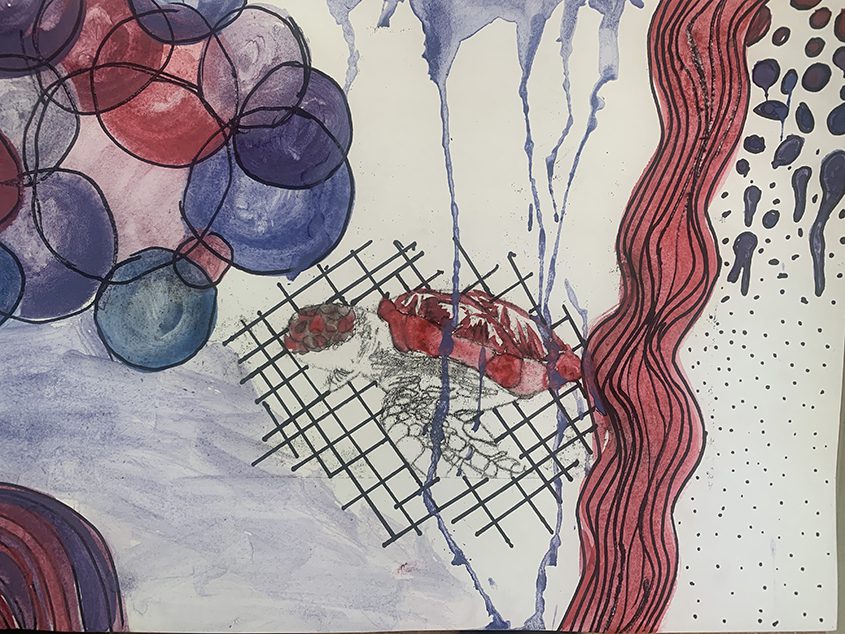Materials explored included charcoal, pencil, watercolour, mono print, and collage. There was an emphasis on creating ‘resistance’ in the work through the contrast of figuration and abstraction but also through the contrast of materials (and material use) such as watercolour washes against strong graphic lines. The students were encouraged to work intuitively and to embrace accidental marks and mistakes as part of the process. Three key components of this project were the use of enquiry-based strategies to explore the artists’ work, considering artistic process and engaging in playful practice.