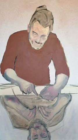 Inspired by the philosophy of existentialist writers and artists, my goal is to convey in some way the truth I find within the world with paint. The figures within my work are alone and tend to hold quiet blank expressions within an abstract, surreal background.