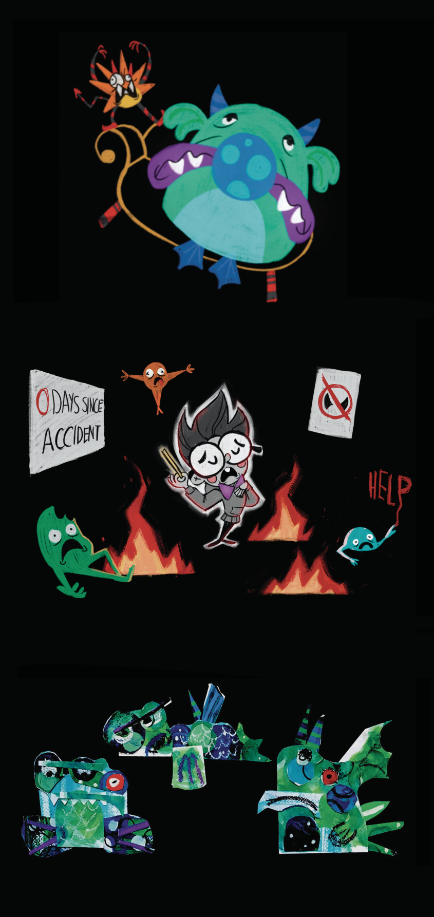 The animation acts as a visual metaphor, exploring my struggle to create due to a physical injury. Having tendonitis forced a shift away from digital methods of creation, leading to the use of traditional mediums such as painting, model making and collage. This influenced the conceptual and stylistic choices throughout the making of the animation.