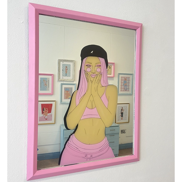 This project also speaks to the expectations placed on women to meet unrealistic beauty ideals while being shamed for engaging too closely with them. Beauty is encouraged, but vanity is punished—especially when a woman appears aware of her own image. As Berger’s quote reveals, the mirror becomes a tool of judgment in a woman’s hands.  But in my work, I aim to reclaim it. I use mirrors not to condemn, but to empower—to allow space for reflection that is personal, complex, and unapologetically owned by the viewer themselves. So with this, my work invites you to indulge in its vanity, bask in it and reclaim your image as your own.