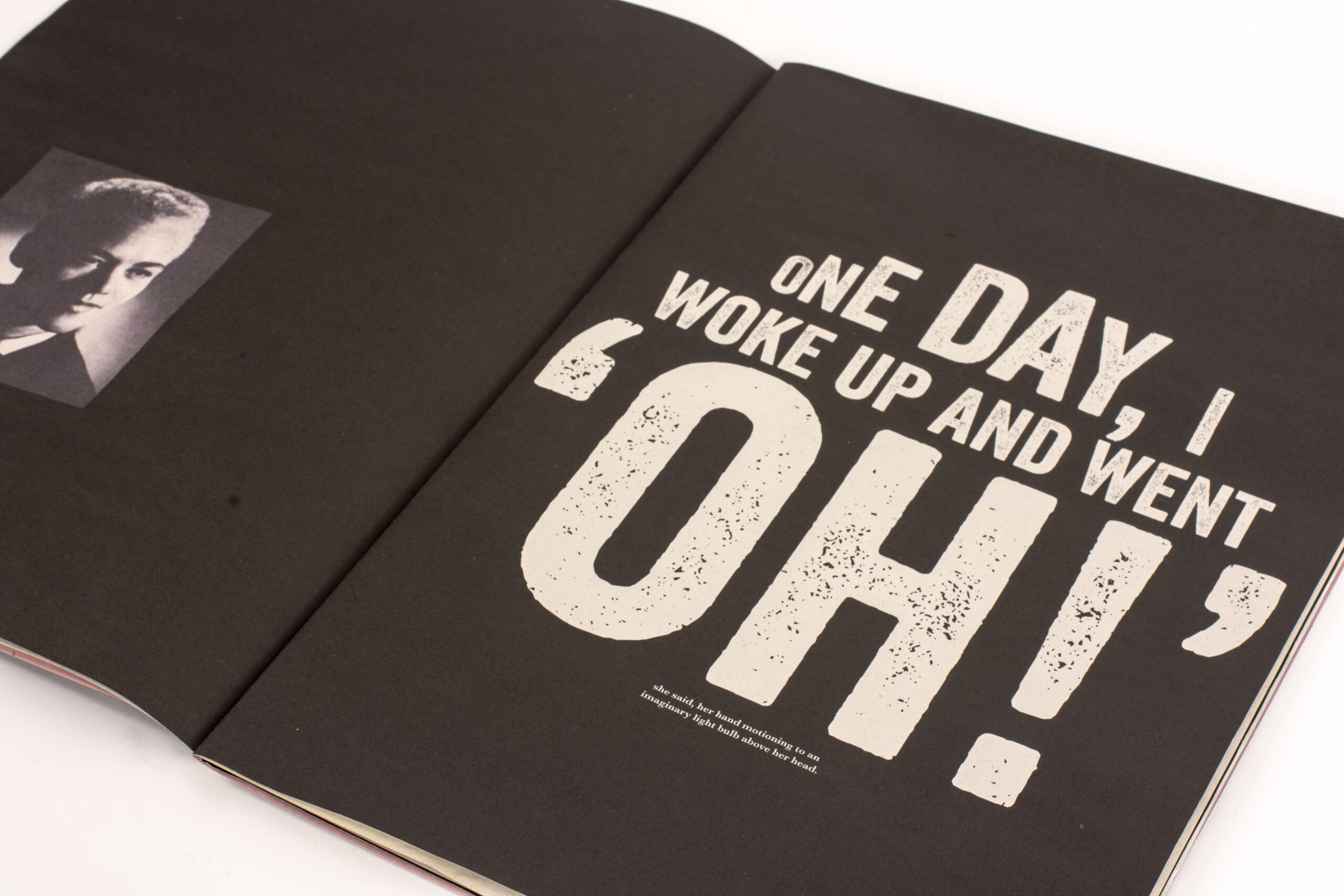 Drawing inspiration from historic protest art and designers such as Paula Scher, this publication is a bold typographic celebration of Stonewall veteran, Stormé De Larverie. Loud, irregular typographic spreads which demand your attention act as the vehicle for Stormé’s story. From the illegitimacy of her birth to an interracial couple in the deep south, to the boundaries she continually pushed to pave the way for LGBTQ+ rights- this book pays tribute to the life of a woman who is otherwise known anonymously as “The Stonewall Lesbian”, having thrown the first punch at the Stonewall riots.