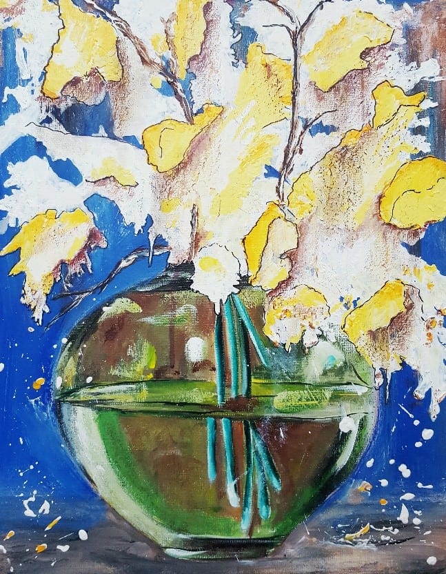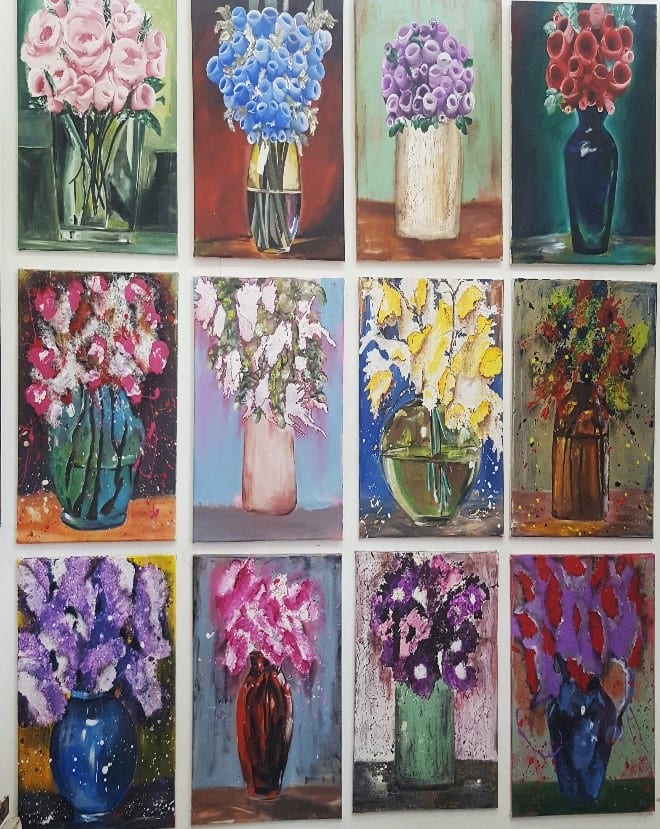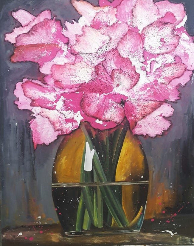 Her paintings are as much about what’s going on beneath the flowers as what’s happening above. Similar to Freud’s analogy of the iceberg, these flowers represent the importance of the subconscious in directing human behaviour. While we are fully aware of what is going on in the conscious mind, we have no idea what is stored in the subconscious.
