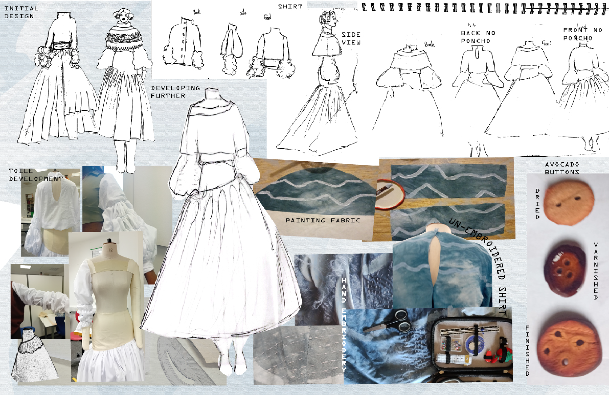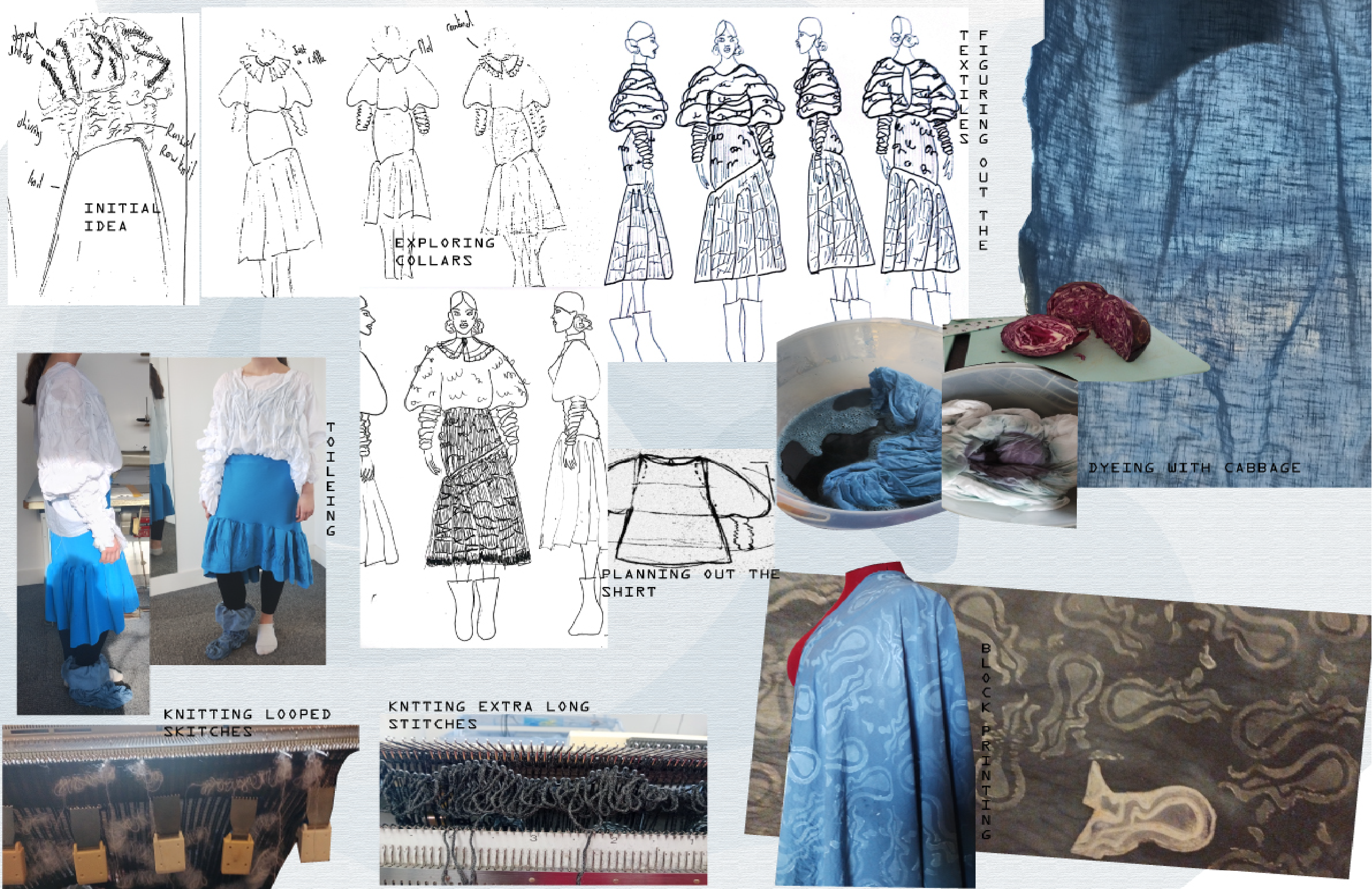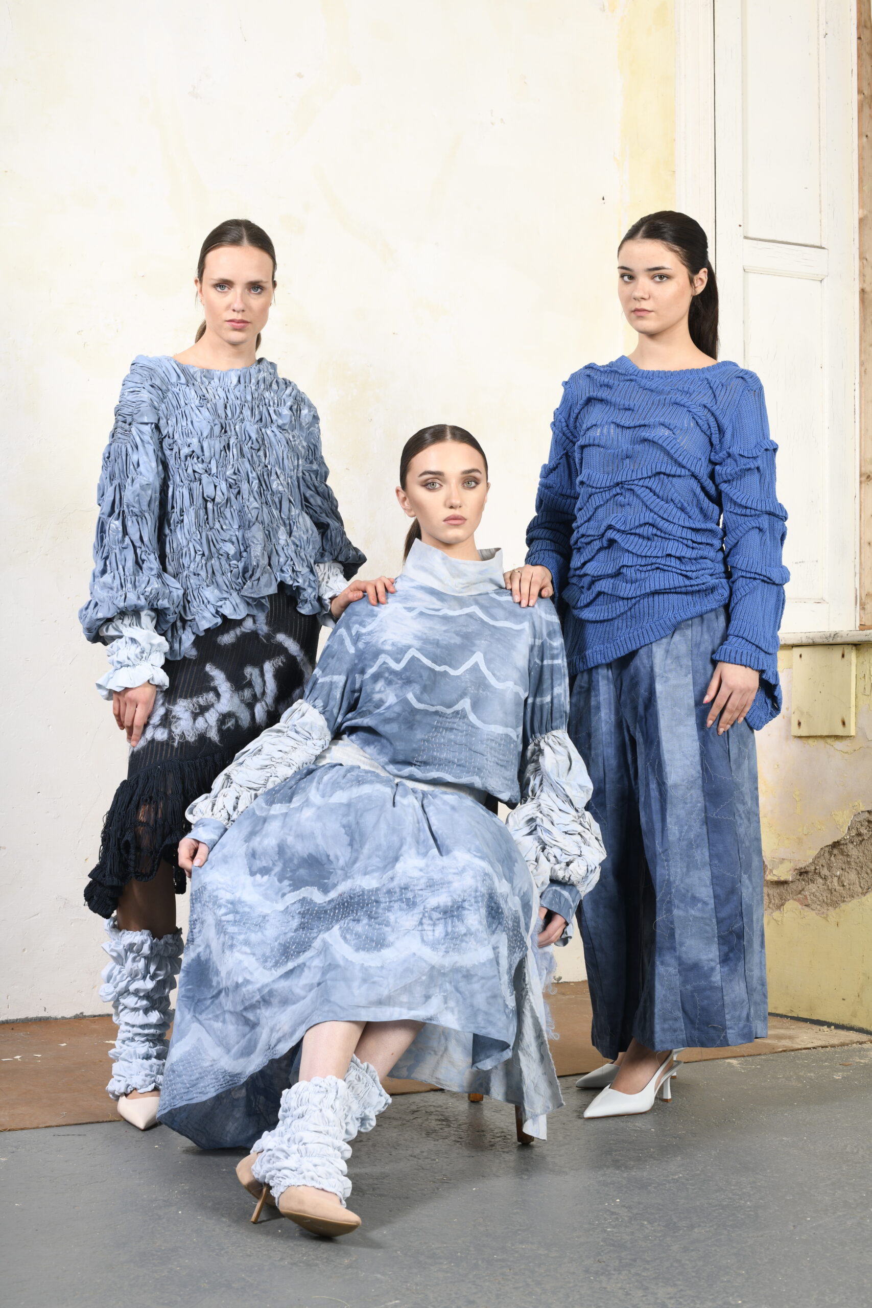 My current collection draws inspiration from Traditional Polish Costumes silhouettes and textures while incorporating textiles that reflect Irish landscapes. Through knit,weave, embroidery, I explore the fusion of heritage and nature, creating pieces that honour tradition while embracing contemporary sustainability practices.