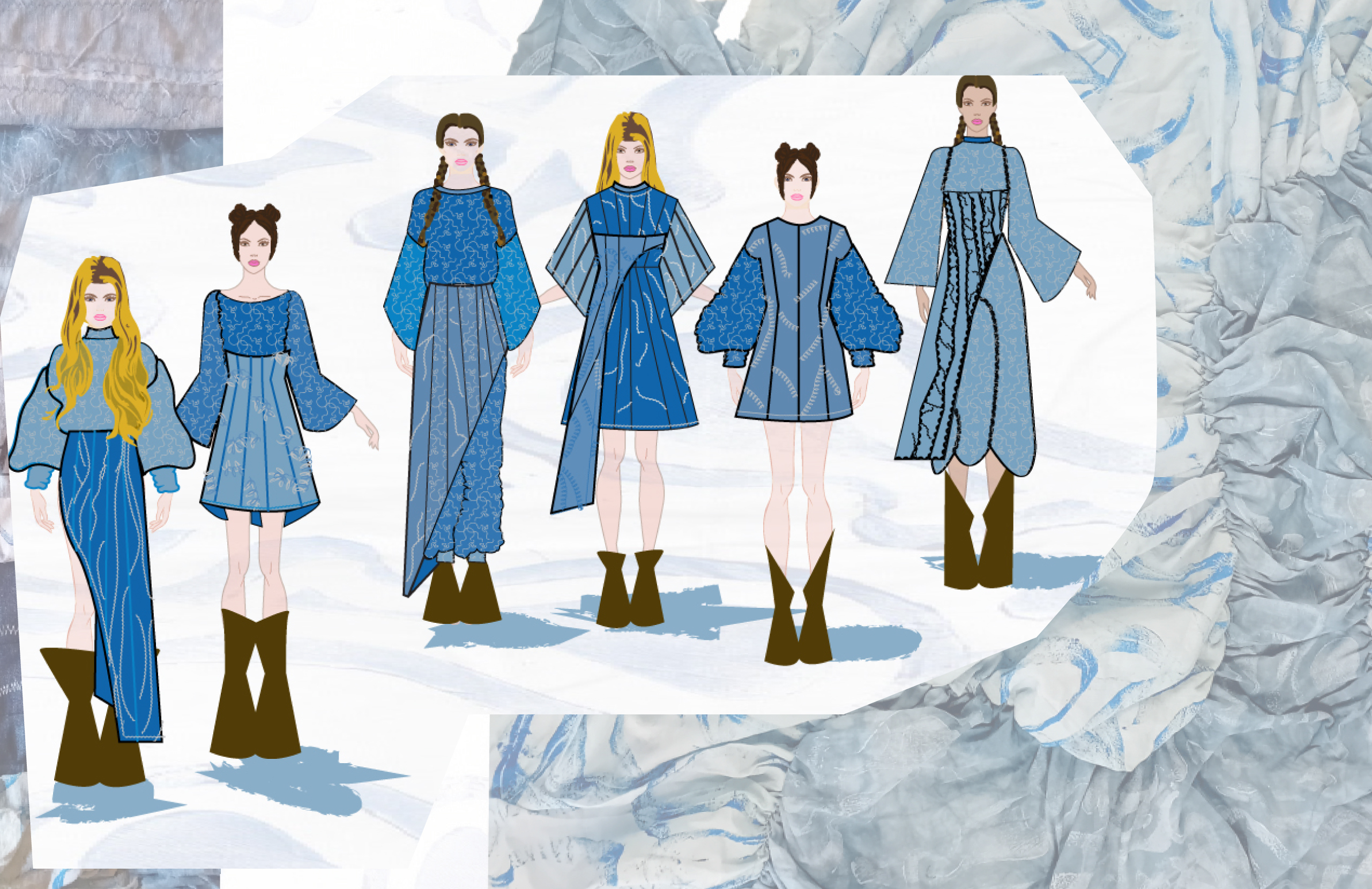 By blending traditional Polish costume silhouettes with textile visuals from Irish landscapes through Korean patchwork (Bojagi) construction methods we create a beautiful fusion of cultures in textiles and garments.