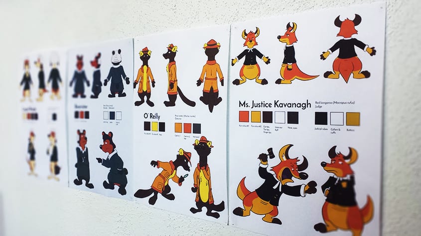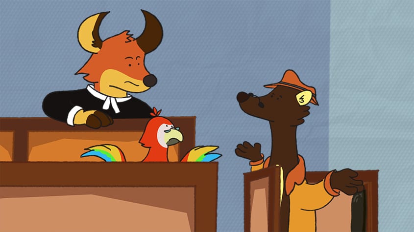 This animated short originates from having previously studied law and a continued interest in character design and Saturday morning cartoons. My aim is to inject humour in what is typically held to be a solemn and pompous scenario: to find the silly in the serious. The use of animal characters is to make the short appealing to a wide audience, keeping it fun enough for the kids and clever enough for the grown-ups.