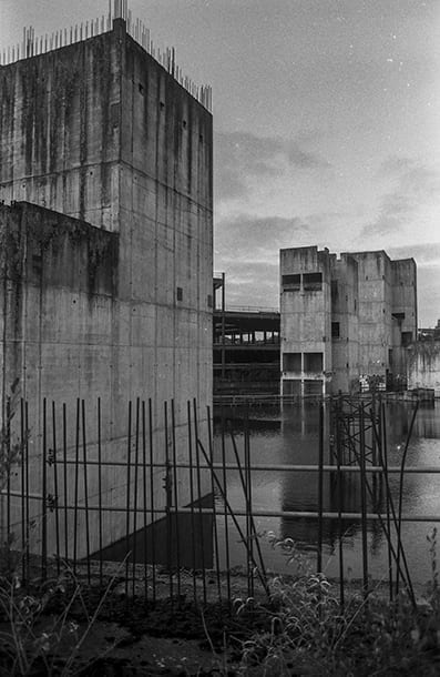 Ruins is a body of work that depicts the urban landscape. It is an exploration of themes of architecture, ideology, and power. The project is concerned with documenting the failure of urban planning, which has altered the Limerick skyline for many years. This led to monolithic concrete structures being littered across the city. The asinine nature of the Celtic Tiger that paved the way for the construction of these monumental structures has caused them to become scars on the urban landscape. The remains have decayed and oxidised over the years. This degradation has caused the structures to become unusable and turned them into contemporary ruins. These functionless brutalist constructs are left to stand in desolate wastelands as a bleak reminder to the people of Limerick the hardship caused by the recession.
