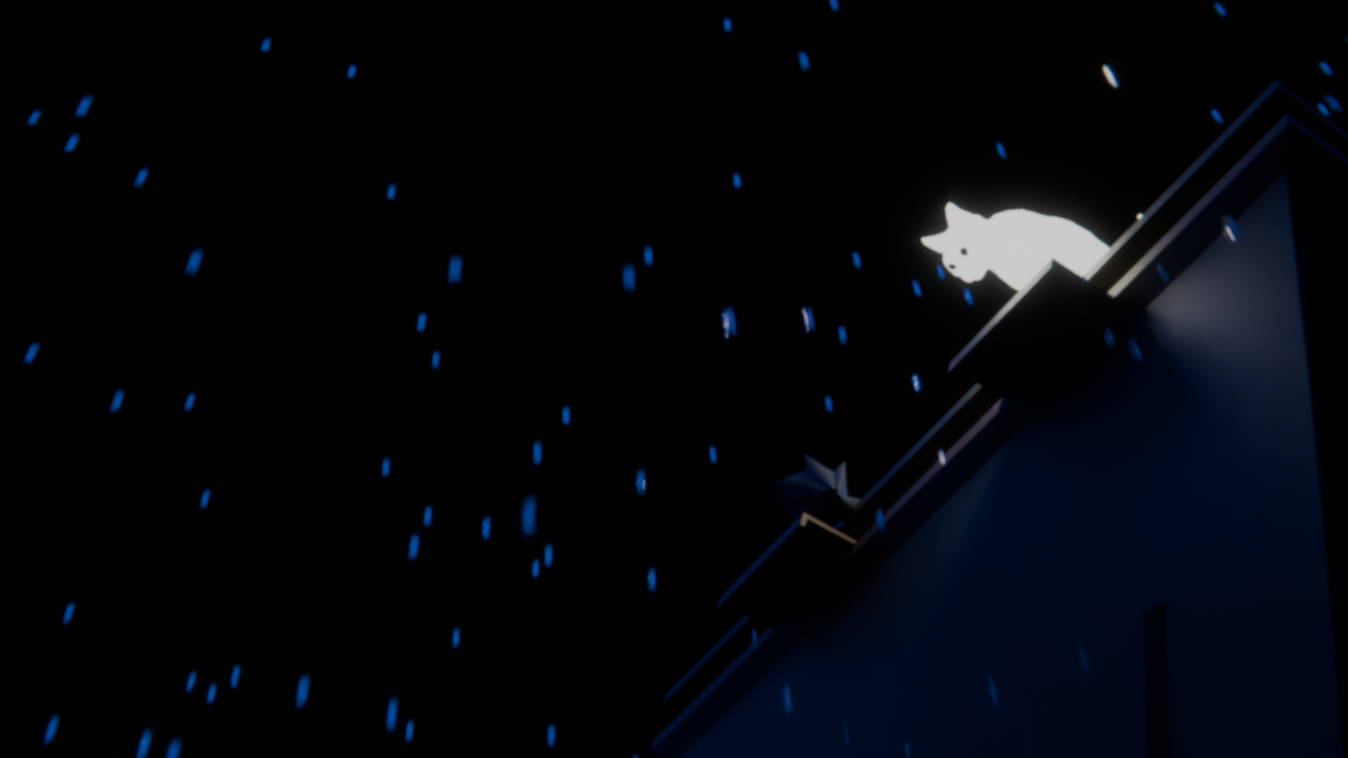 These memories unfold like stepping stones: a cardboard box, a warm home, the death of a loved one and the cold reality of life alone on the streets. As the cat journeys through this reflective space, he faces physical manifestations of his pain and loss. It is only through acceptance that he finds peace, and with it, a final choice: to move on into the afterlife, or return to the world of the living.
