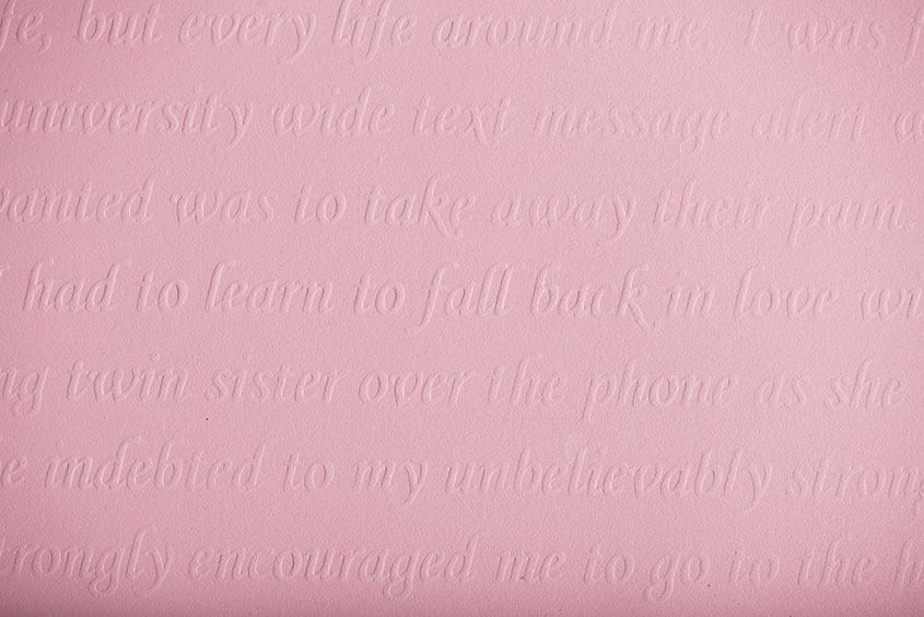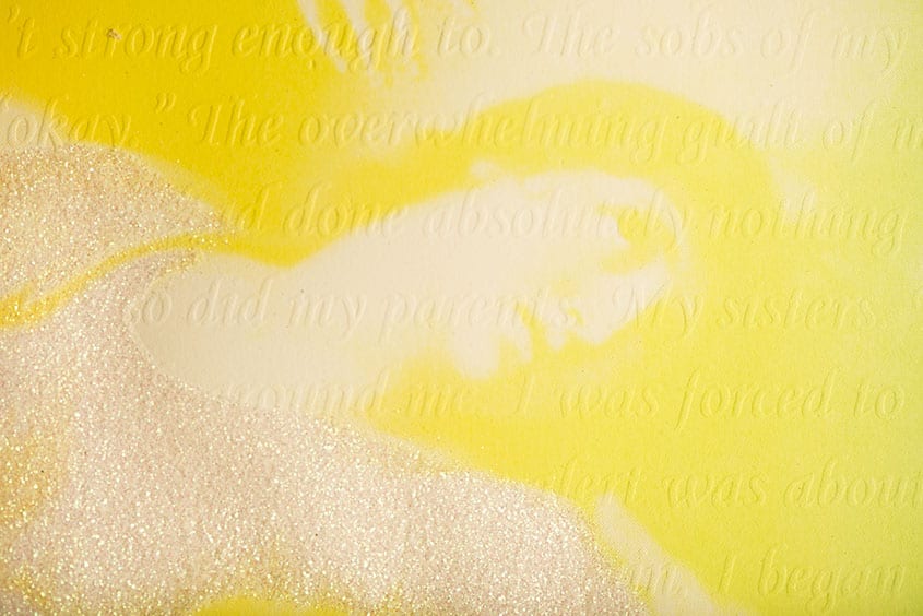 ‘Time and Time Again’, aims to give a voice to those whose voices cannot be heard and raise a widened awareness of the impact of sexual assault and rape. These works are heavily influenced by the world we live in today – a world where rape culture is still a prominent issue. A world where victim blaming is still viewed as acceptable by many, as a reason to excuse rapists and perpetrators of sexual assault. A world where a thong is accepted as consent. The use of contemporary materials, which consist of metallics, glitter and high intensity colours, is an attempt to confront society’s understandings and acceptance of rape culture and sexual assault. The re-appropriation of old master works depicting rape and the aftermath of such is a confrontation of the prominent existence of these issues in contemporary society, and a confrontation of societies inability to combat rape and sexual assault, making these centuries old works relevant to our society. The use of blind embossment is to contradict the whispers associated around sexual assault in order to achieve an understanding that this is something that should not be whispered about, but in fact, SHOUTED about.