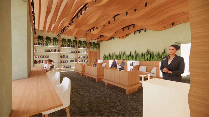 The principal goal of Nirvana Resort is to create a harmonious and immersive environment that reconnects the individuals with nature in a sensory experience rooted in biophilic design principles. This is achieved by emphasising the five senses – touch, sight, hearing, smell, and taste of nature. The design stimulates a touch of natural texture, vision of colours and patterns from the natural world, the sound of water flowing, and the smell of the trees. A thoughtfully designed courtyard featuring flowing water further encourages the guests to step out and embrace the tranquillity of nature.